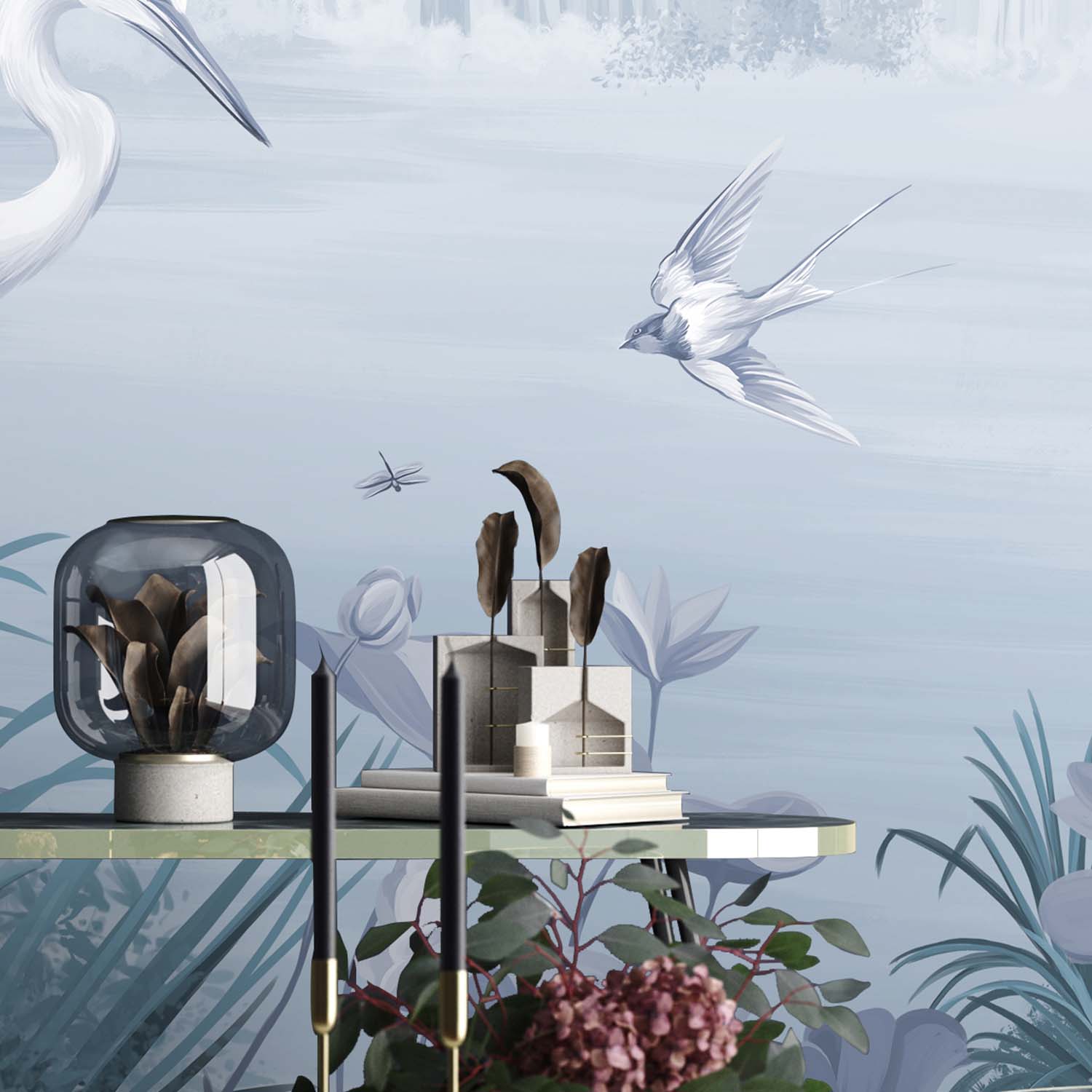 - Адаптация изображения под размер вашей стены с учетом расстановки мебели