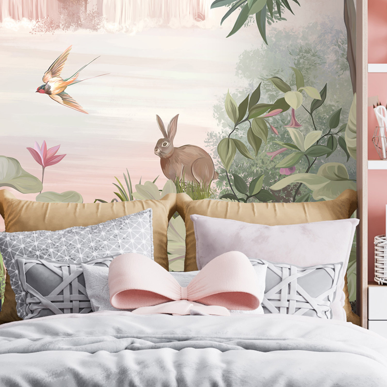 - Адаптация изображения под размер вашей стены с учетом расстановки мебели