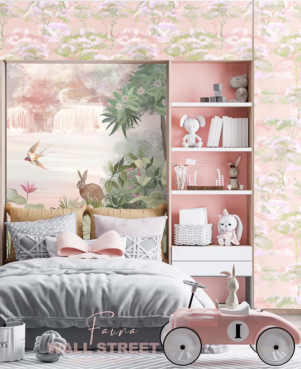 Обои из коллекций Wall Street в трех комнатах: EUPHORIA 22 в гостиной, Zoo в детской комнате, а в спальне Selva