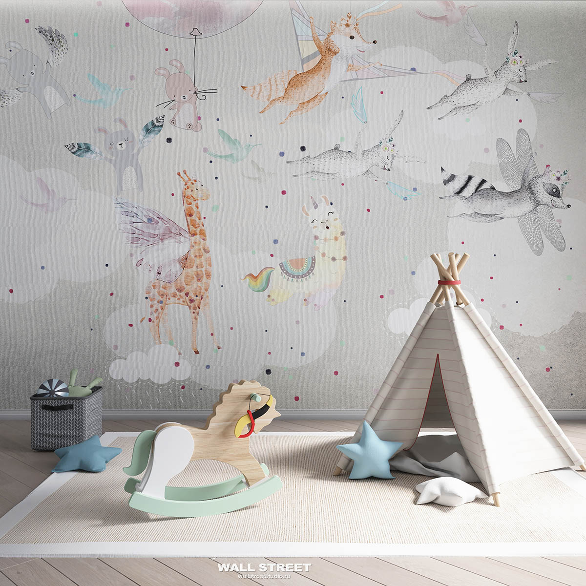 Обои из коллекций Wall Street в трех комнатах: EUPHORIA 22 в гостиной, Zoo в детской комнате, а в спальне Selva