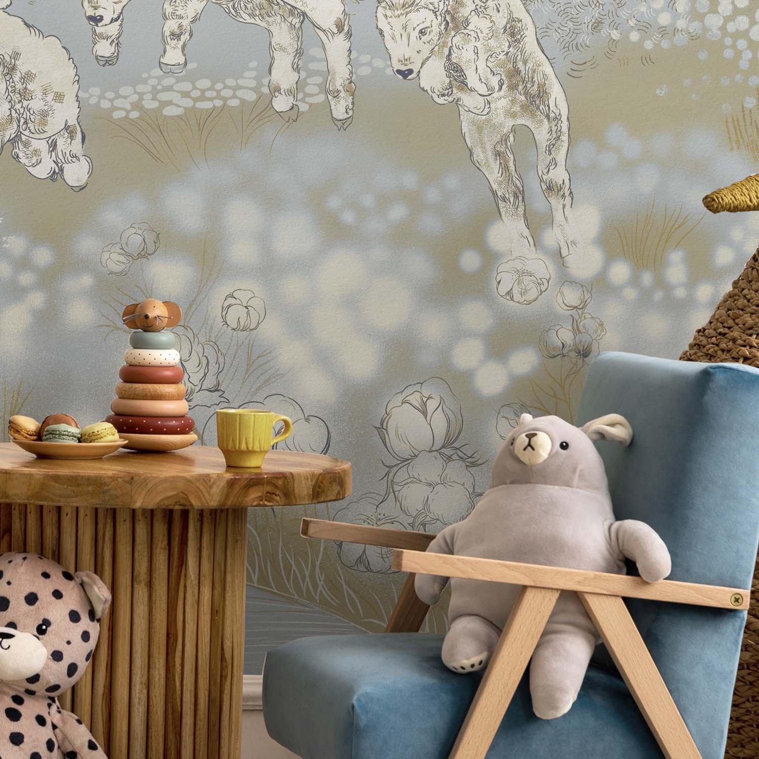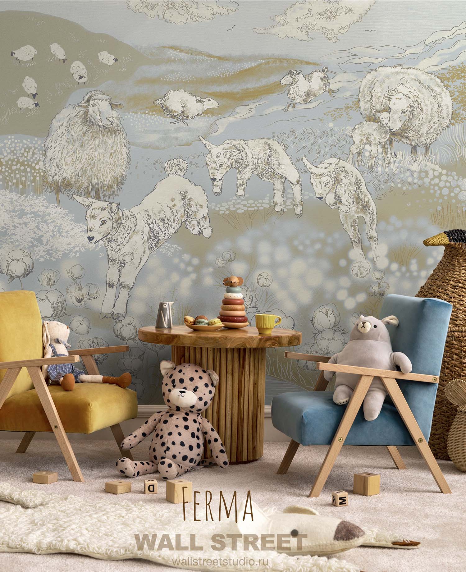Обои из коллекций Wall Street в трех комнатах: EUPHORIA 22 в гостиной, Zoo в детской комнате, а в спальне Selva
