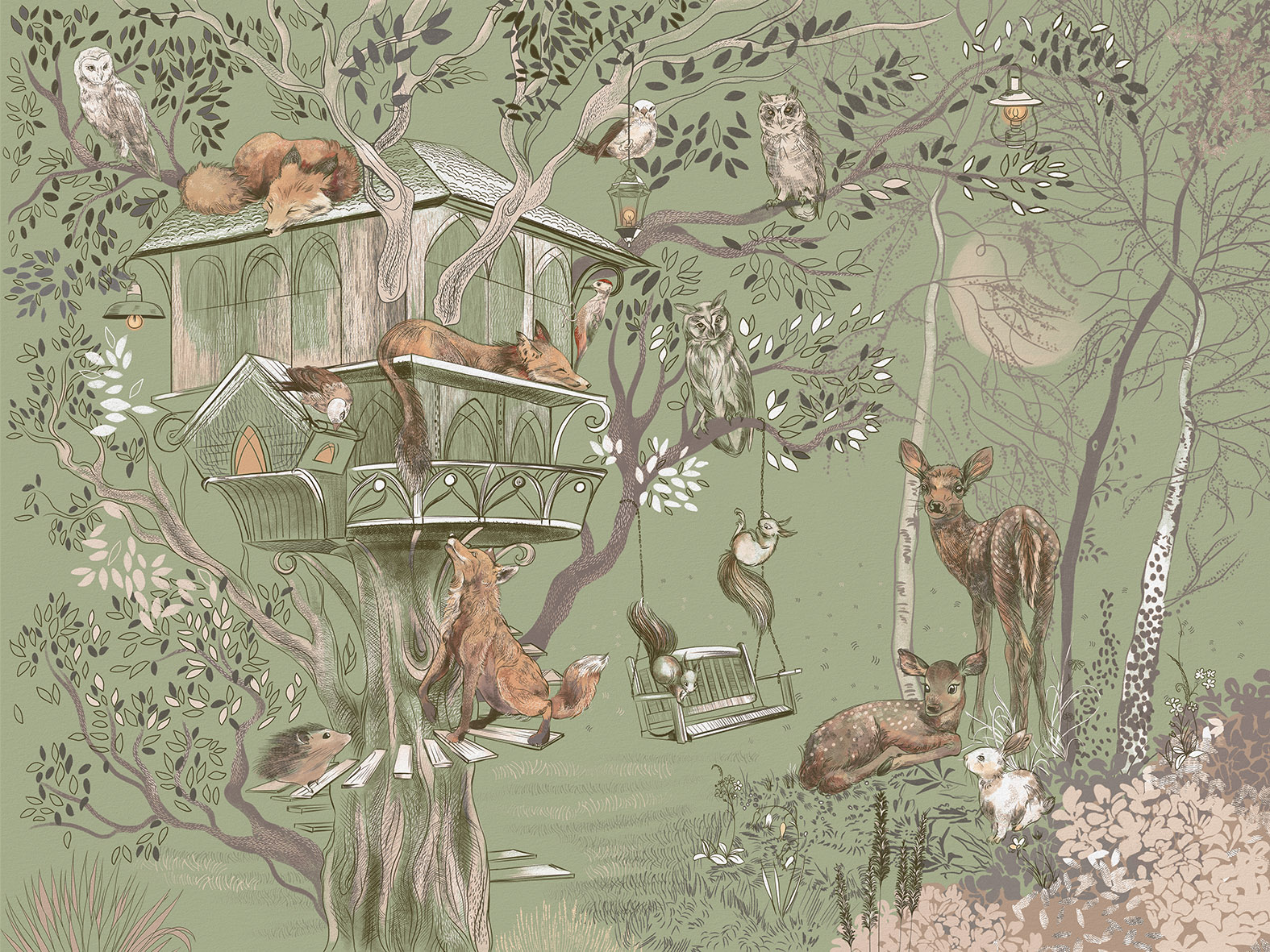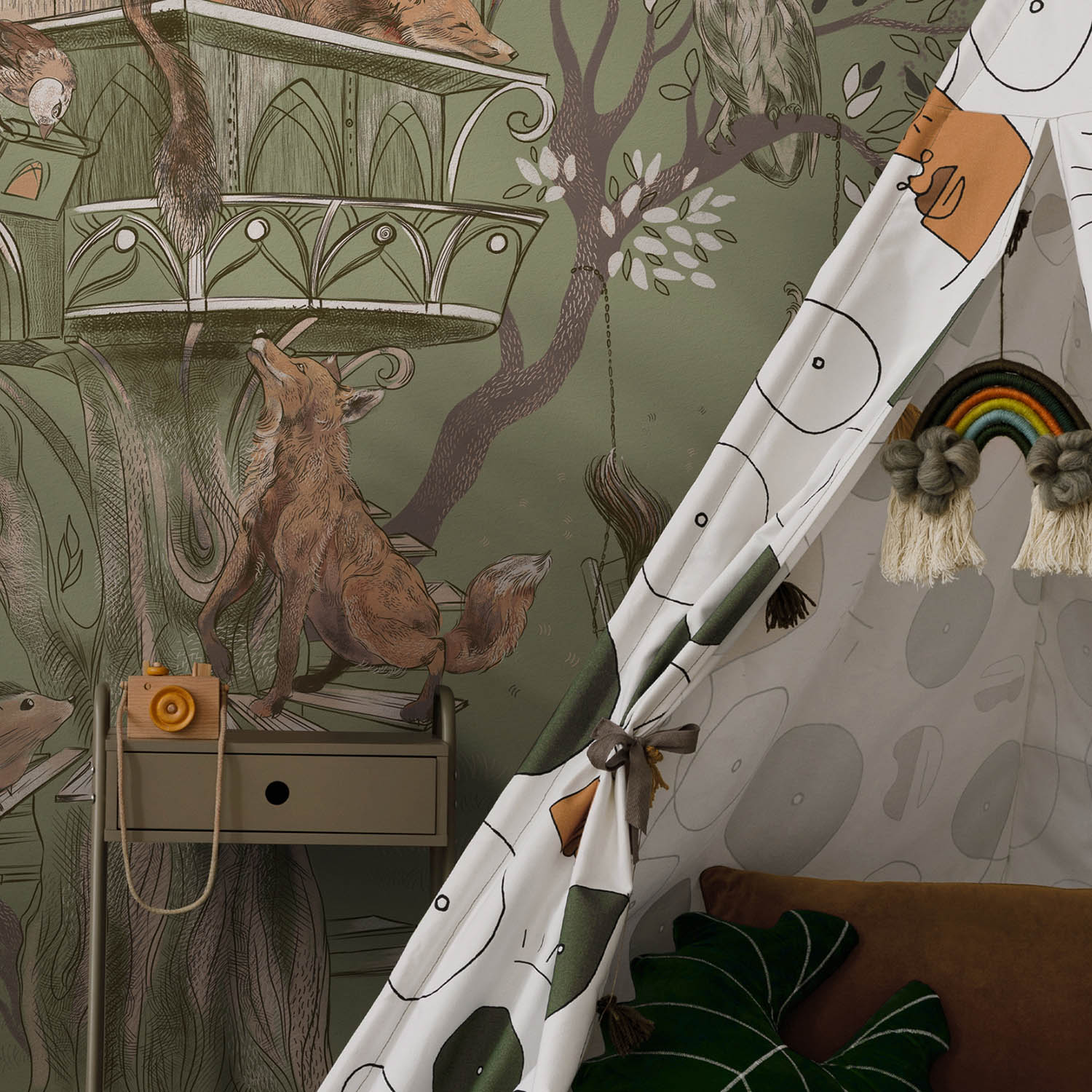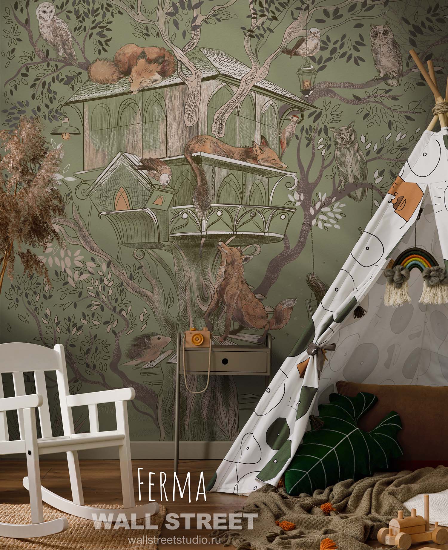 Обои из коллекций Wall Street в трех комнатах: EUPHORIA 22 в гостиной, Zoo в детской комнате, а в спальне Selva