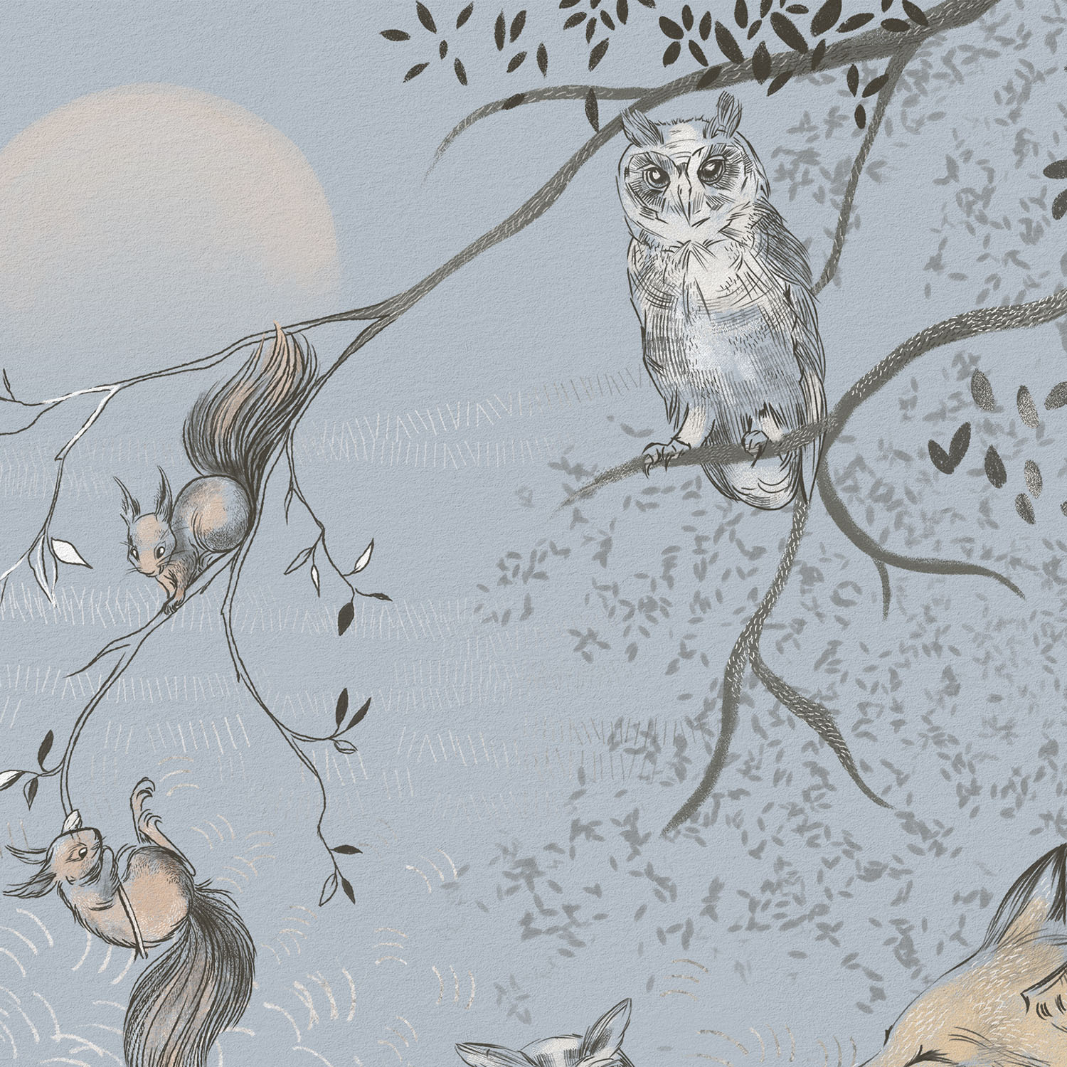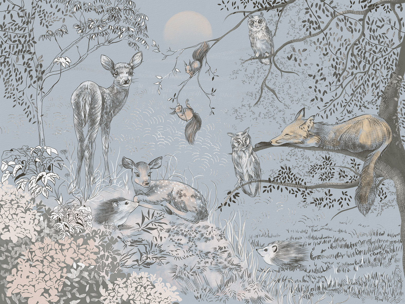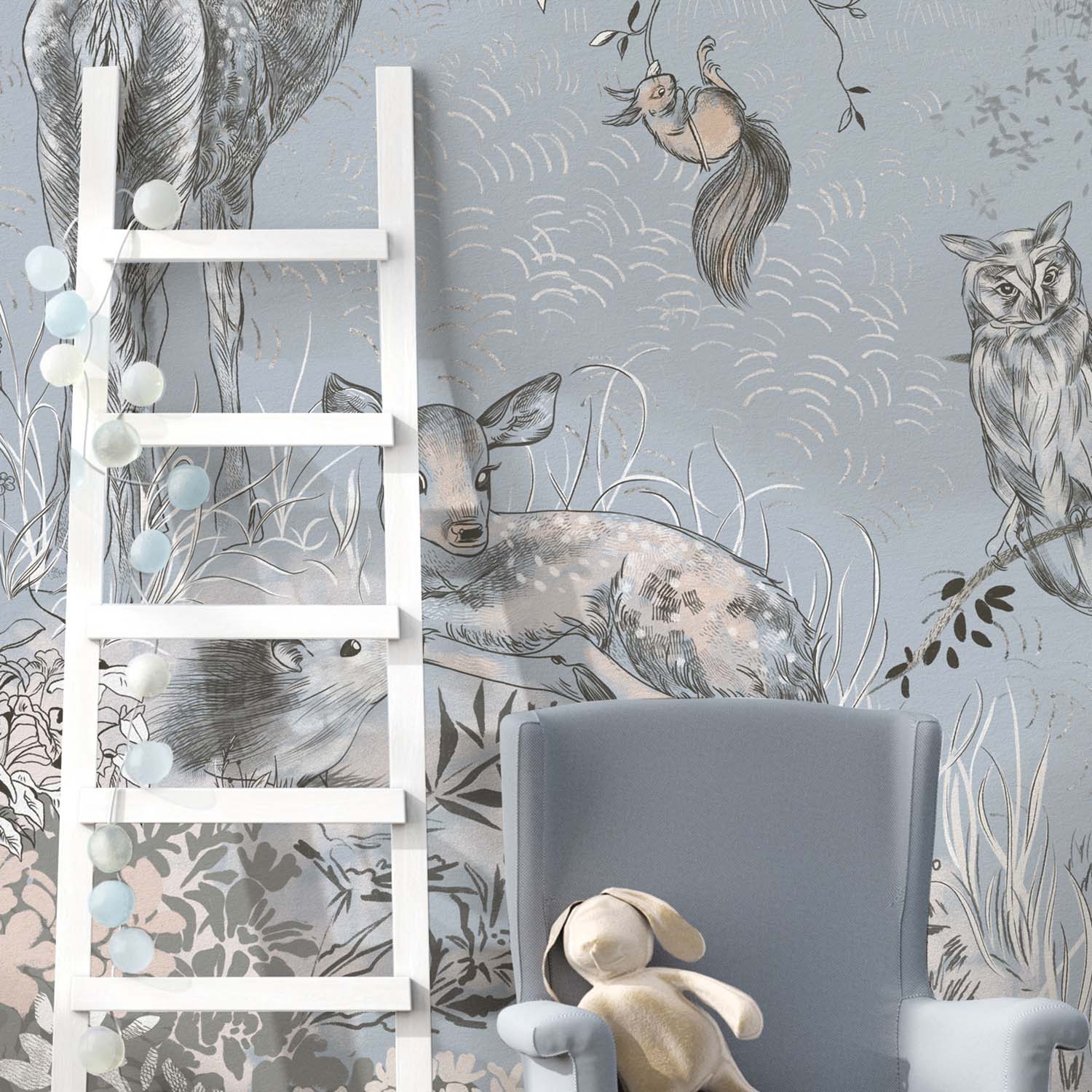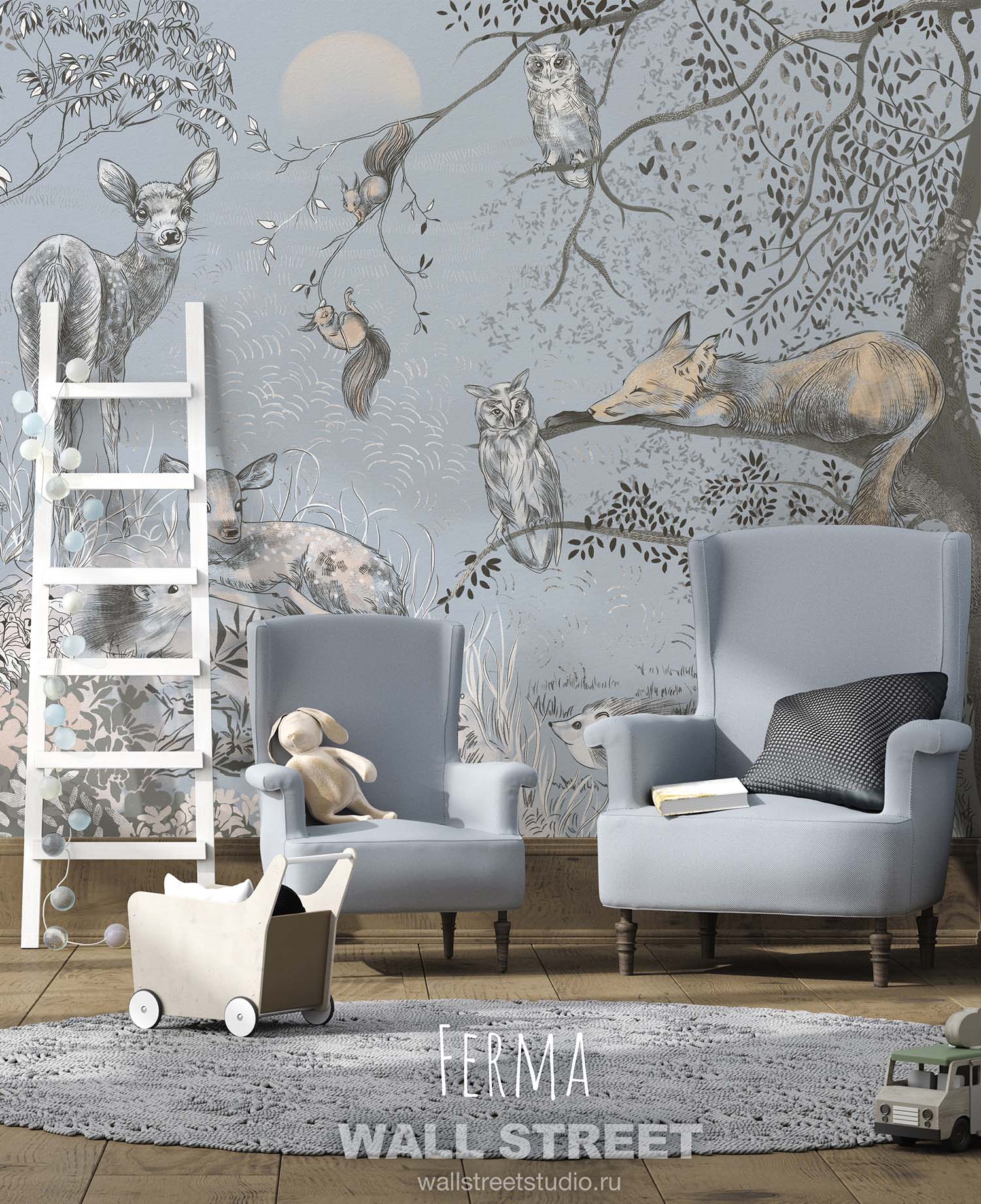 Обои из коллекций Wall Street в трех комнатах: EUPHORIA 22 в гостиной, Zoo в детской комнате, а в спальне Selva