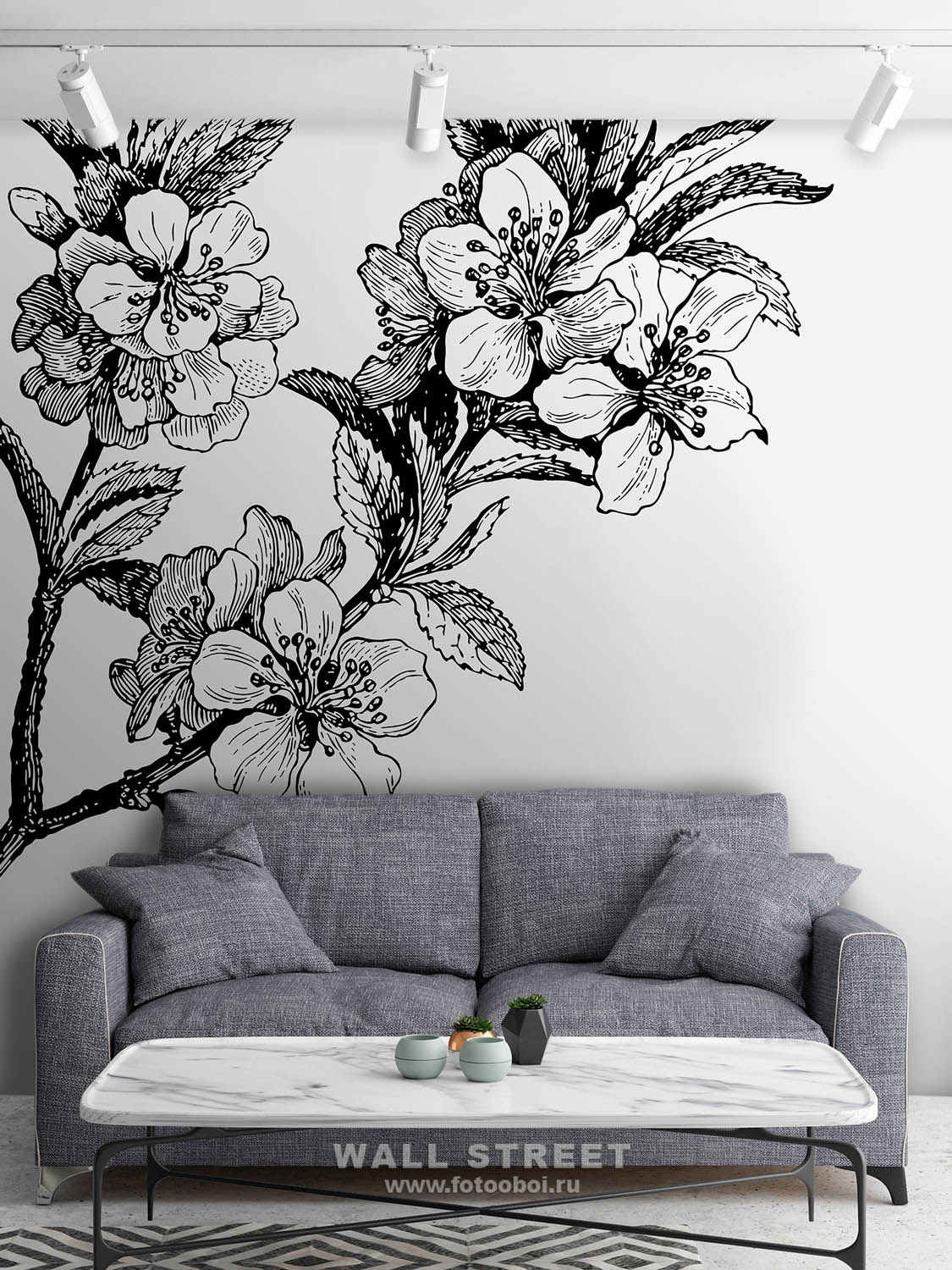 - Адаптация изображения под размер вашей стены с учетом расстановки мебели