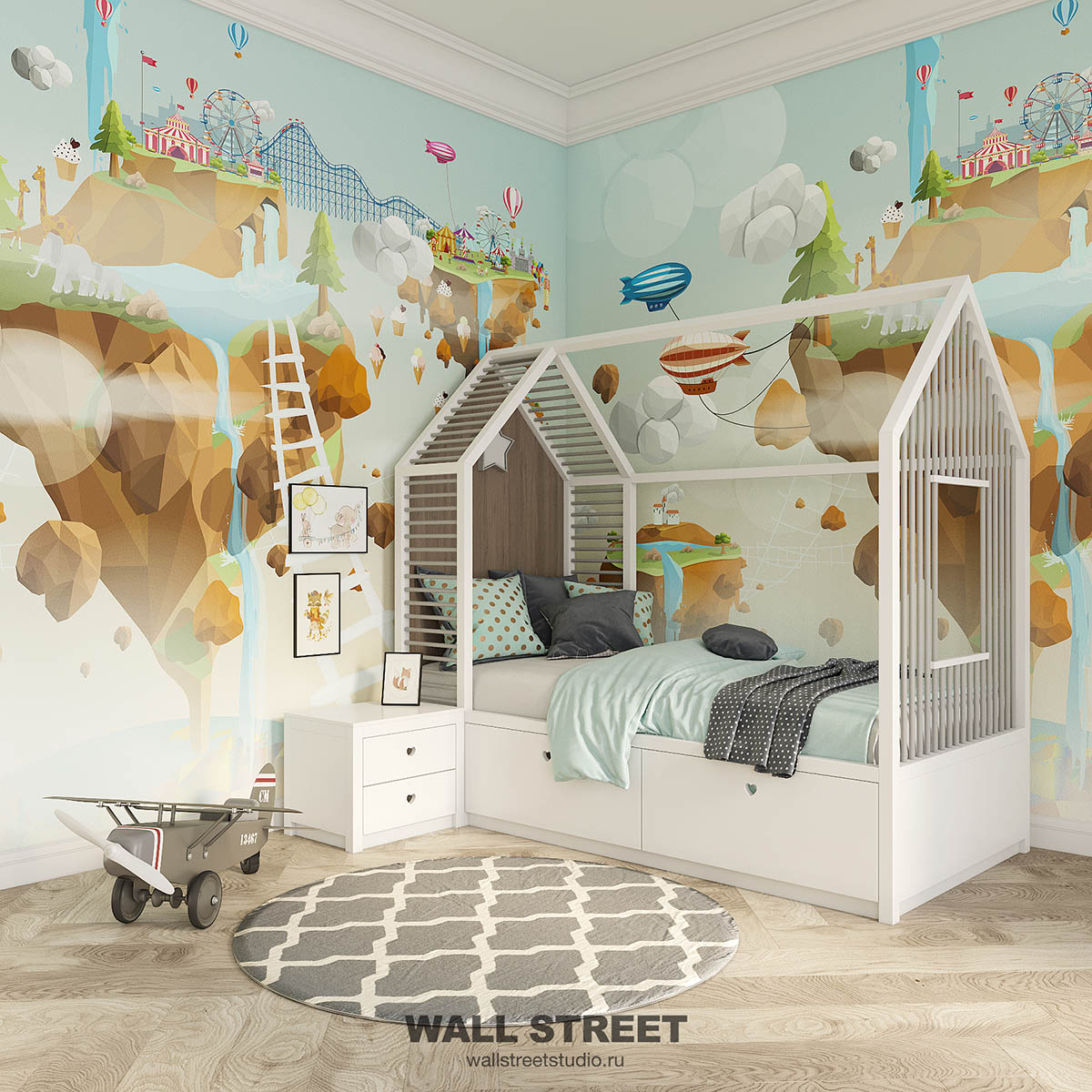 Обои из коллекций Wall Street в трех комнатах: EUPHORIA 22 в гостиной, Zoo в детской комнате, а в спальне Selva