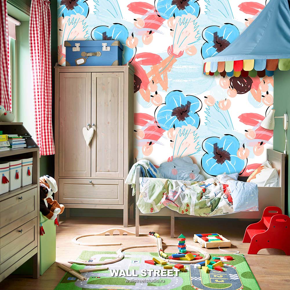 Обои из коллекций Wall Street в трех комнатах: EUPHORIA 22 в гостиной, Zoo в детской комнате, а в спальне Selva
