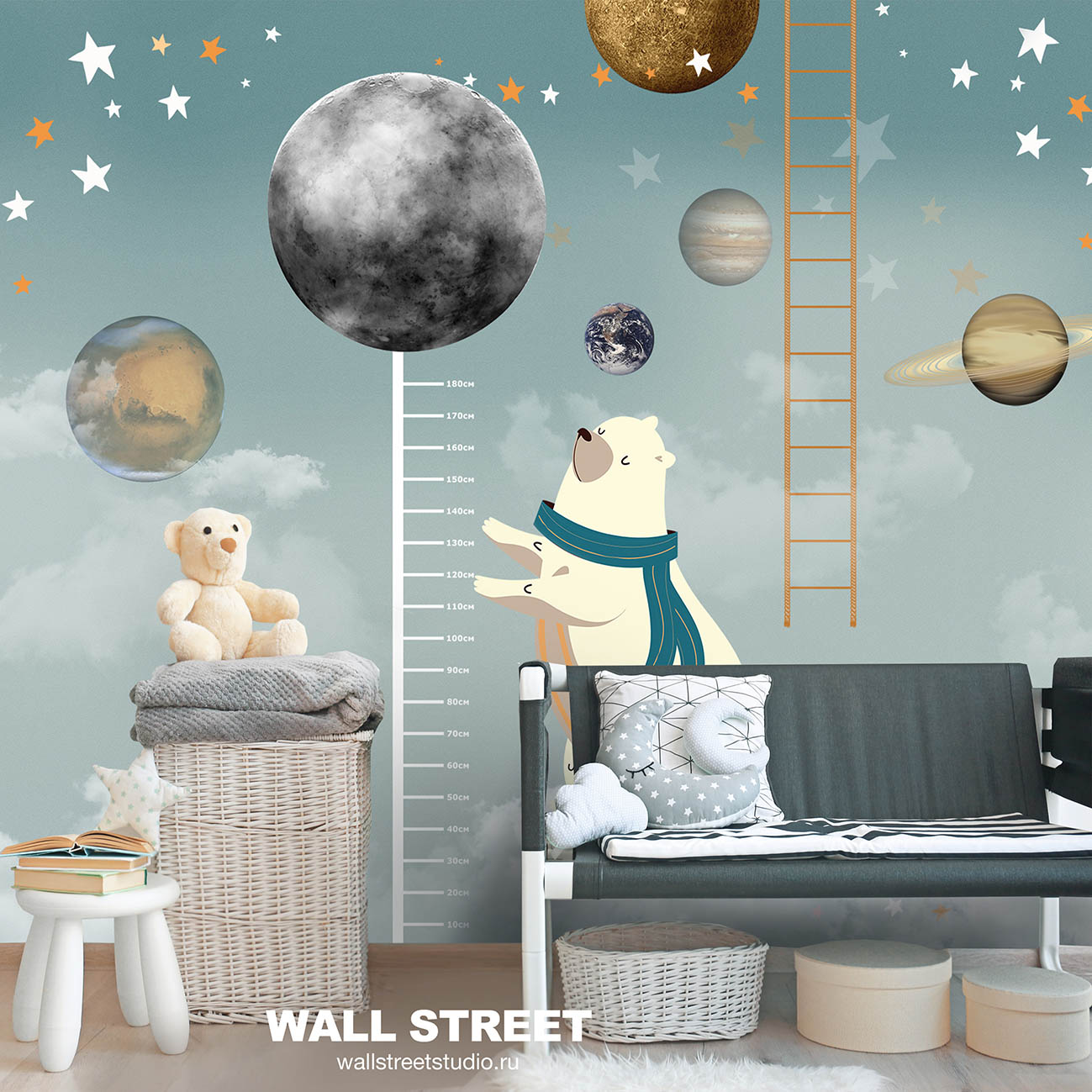 - Адаптация изображения под размер вашей стены с учетом расстановки мебели