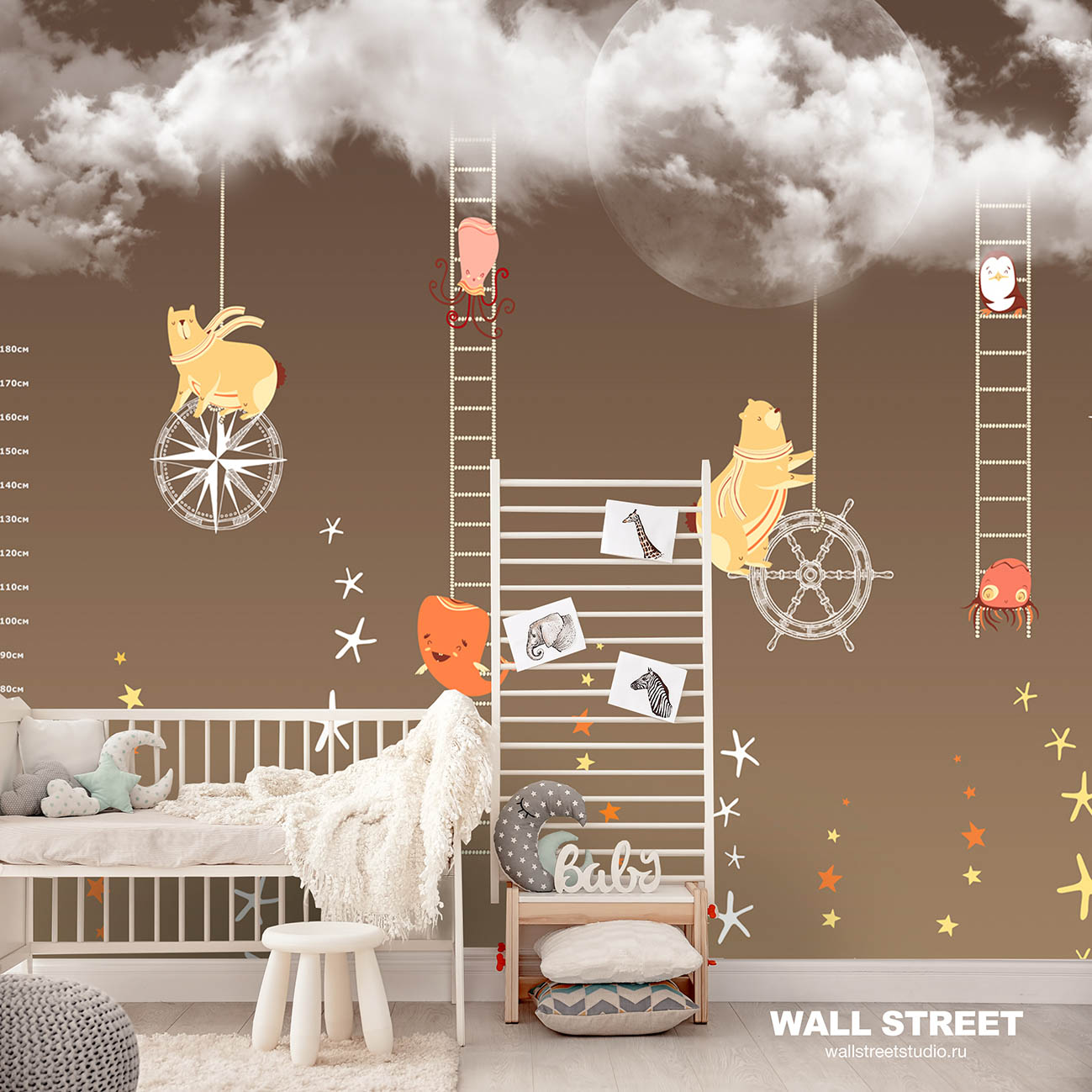 Обои из коллекций Wall Street в трех комнатах: EUPHORIA 22 в гостиной, Zoo в детской комнате, а в спальне Selva