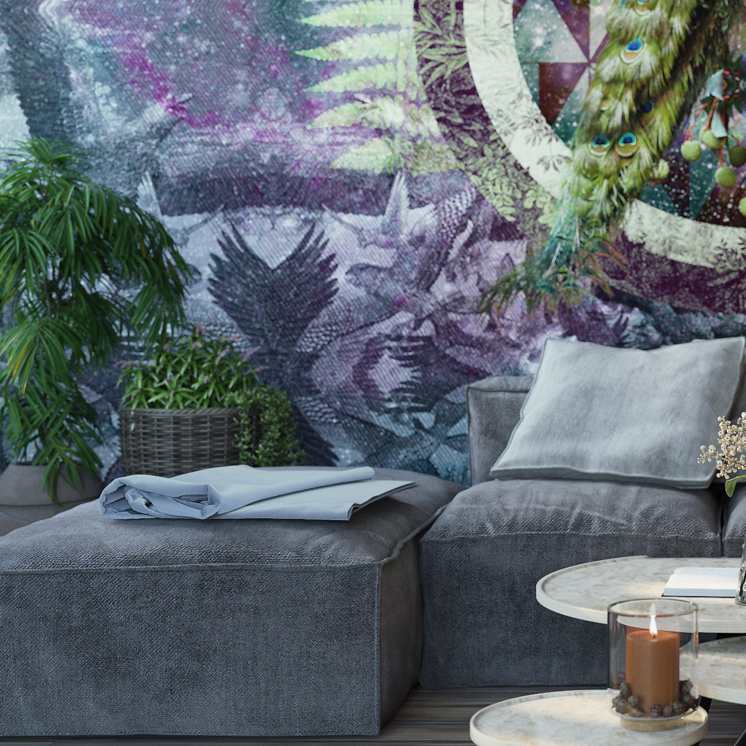 - Адаптация изображения под размер вашей стены с учетом расстановки мебели