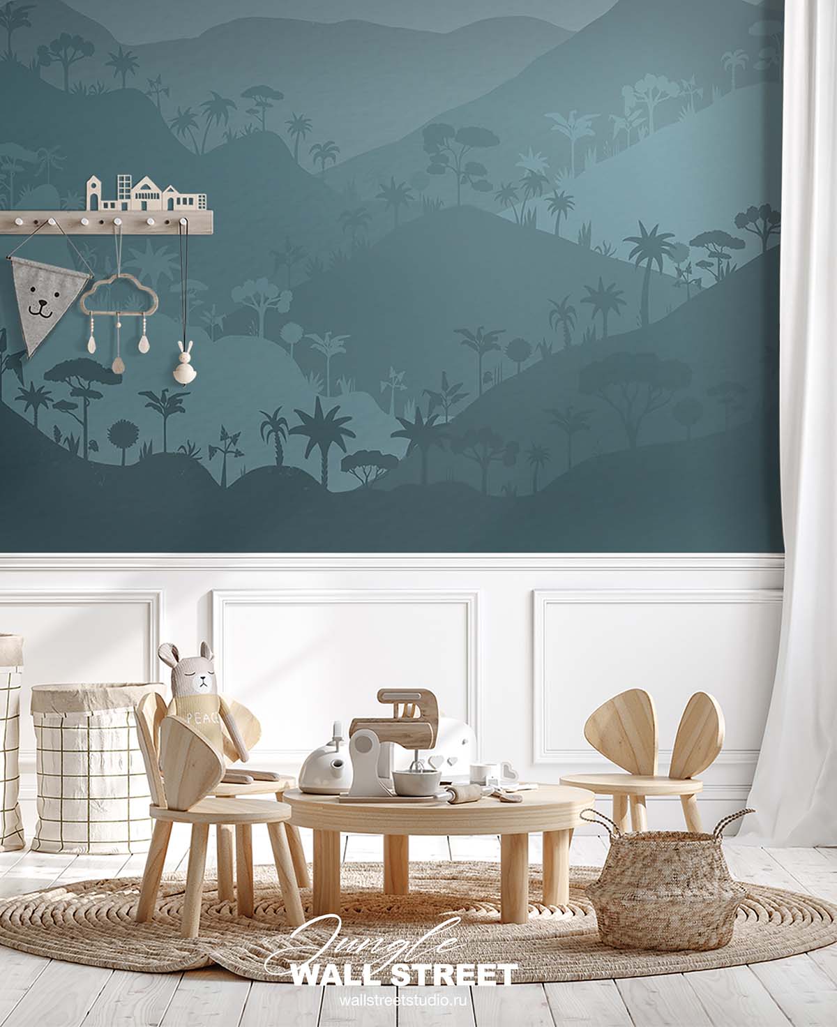 Обои из коллекций Wall Street в трех комнатах: EUPHORIA 22 в гостиной, Zoo в детской комнате, а в спальне Selva