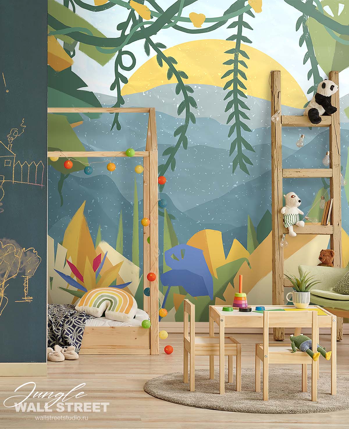Обои из коллекций Wall Street в трех комнатах: EUPHORIA 22 в гостиной, Zoo в детской комнате, а в спальне Selva