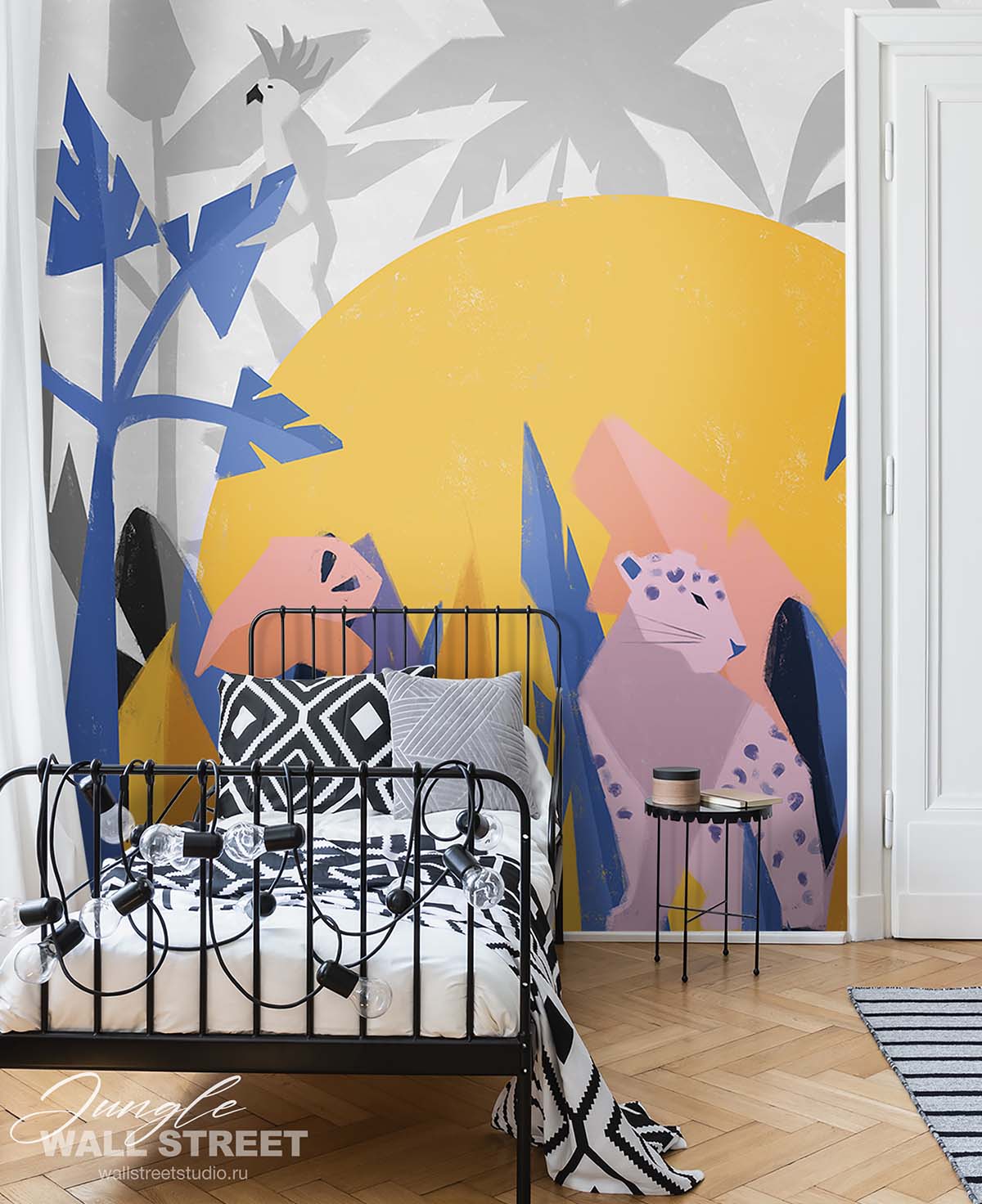 Обои из коллекций Wall Street в трех комнатах: EUPHORIA 22 в гостиной, Zoo в детской комнате, а в спальне Selva