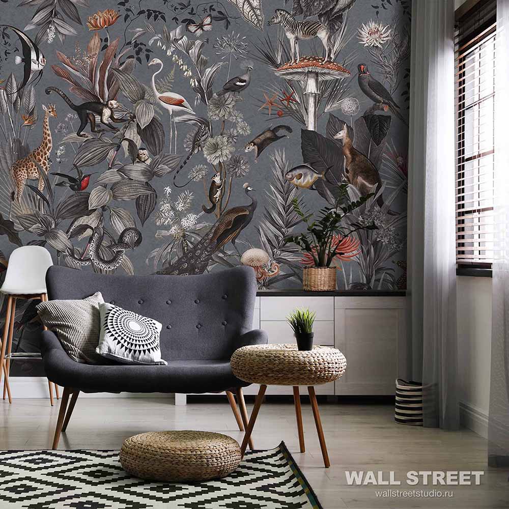 Обои из коллекций Wall Street в трех комнатах: EUPHORIA 22 в гостиной, Zoo в детской комнате, а в спальне Selva