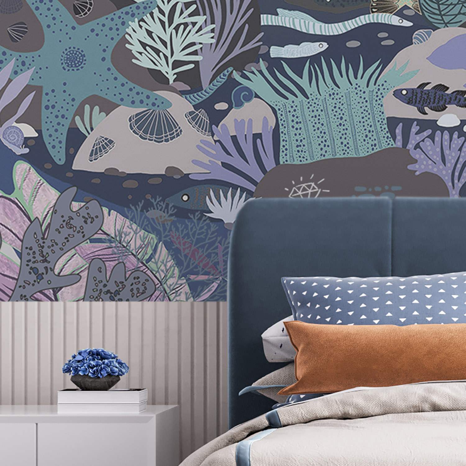 - Адаптация изображения под размер вашей стены с учетом расстановки мебели
