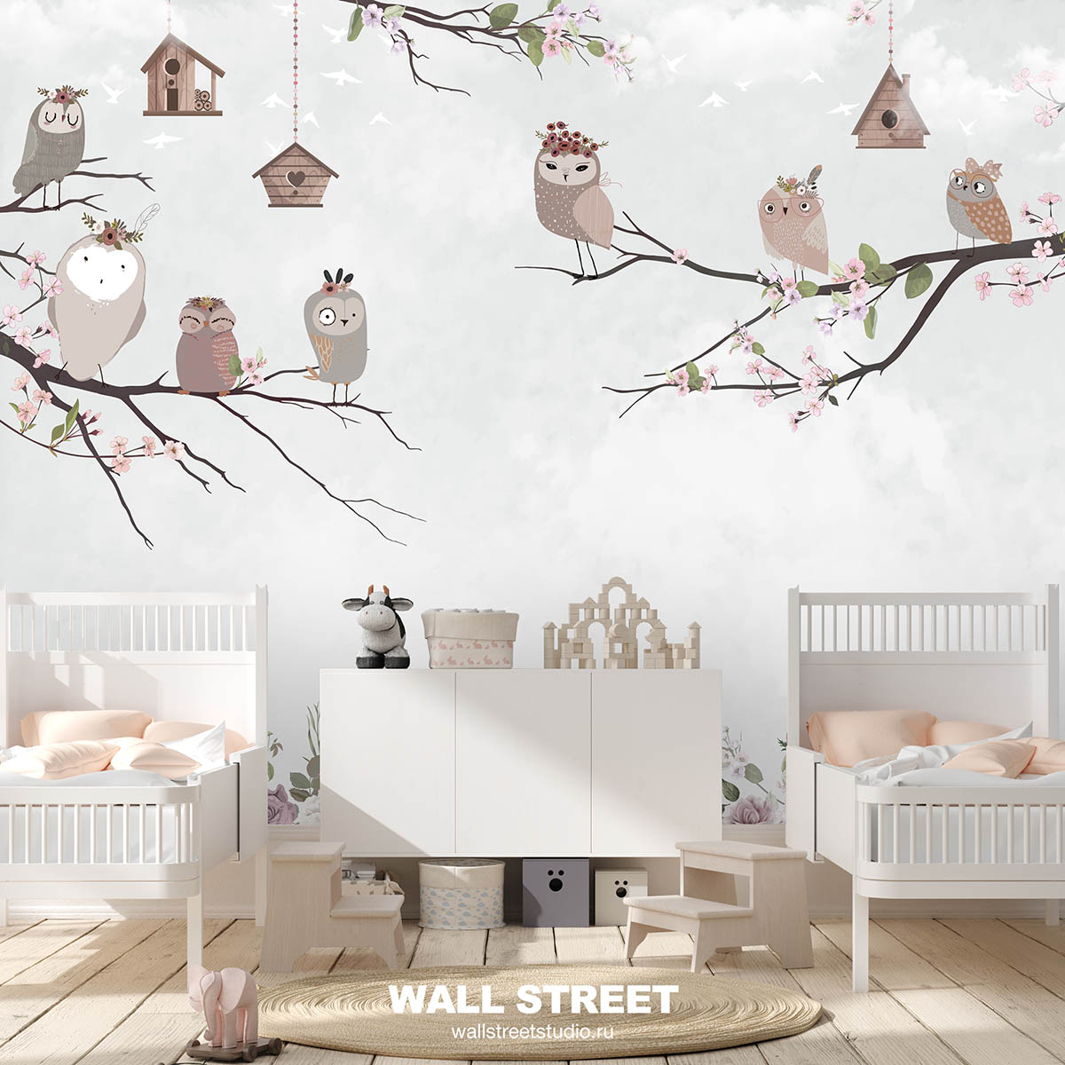 Обои из коллекций Wall Street в трех комнатах: EUPHORIA 22 в гостиной, Zoo в детской комнате, а в спальне Selva