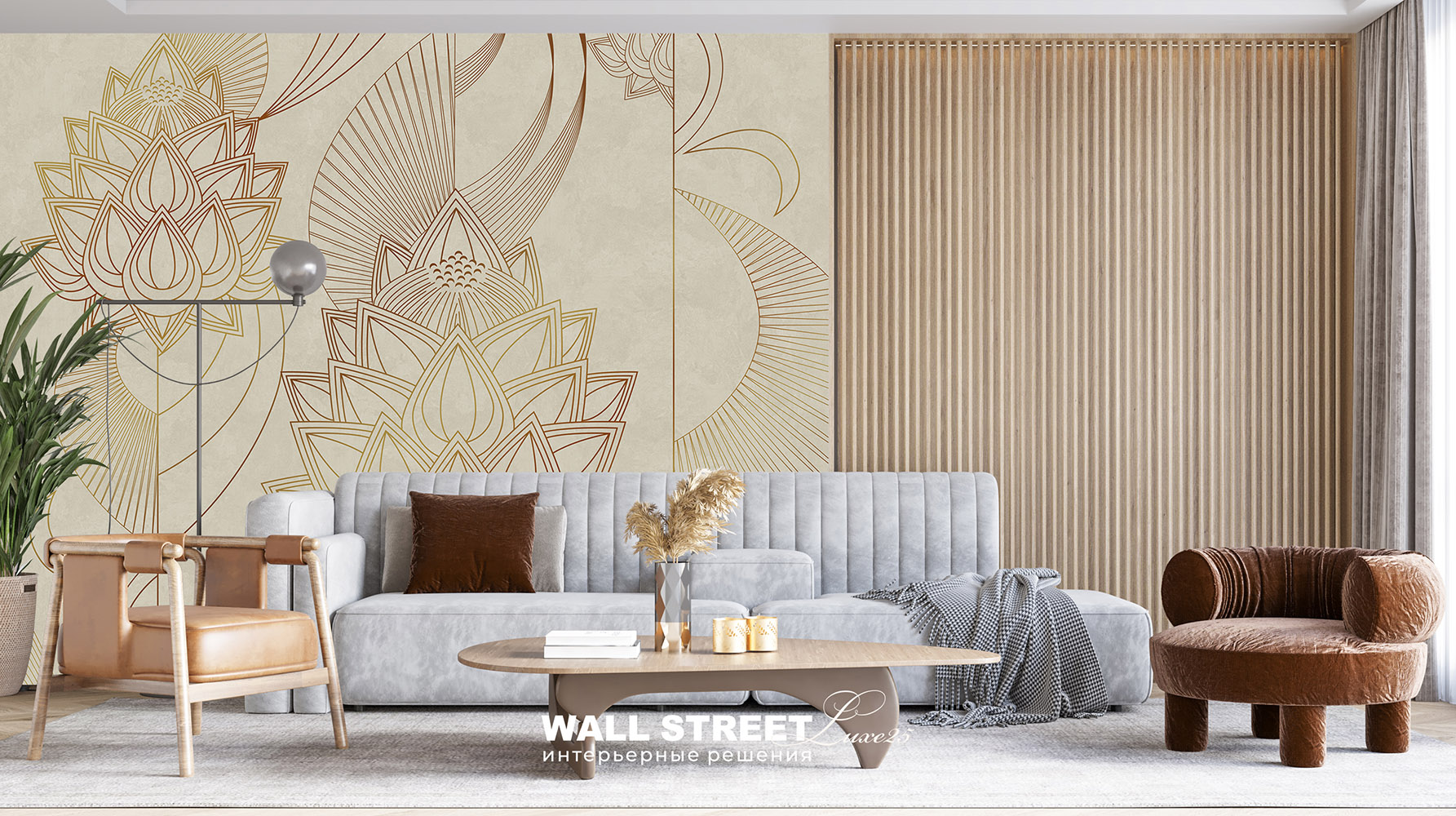 - Адаптация изображения под размер вашей стены с учетом расстановки мебели