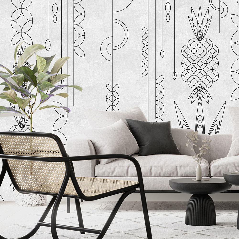 - Адаптация изображения под размер вашей стены с учетом расстановки мебели