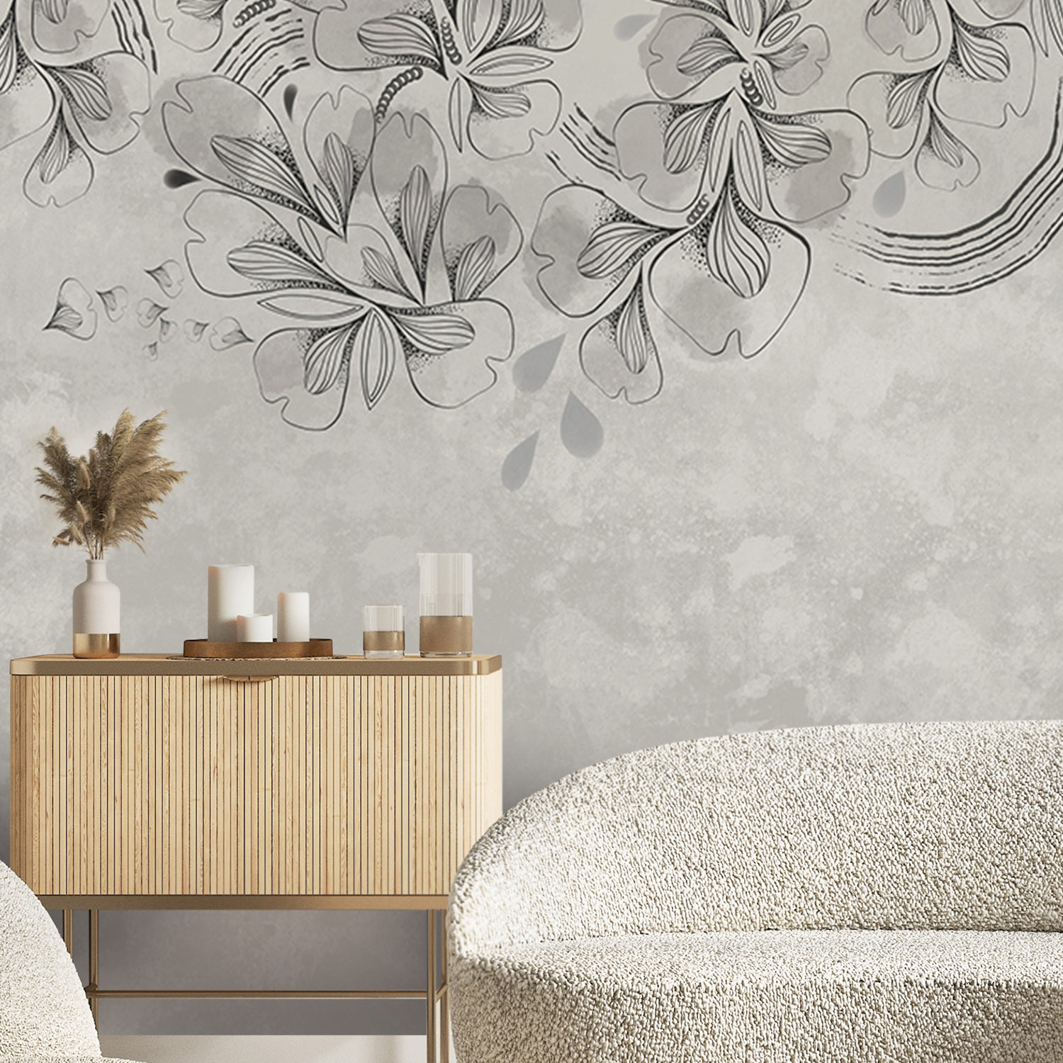 - Адаптация изображения под размер вашей стены с учетом расстановки мебели