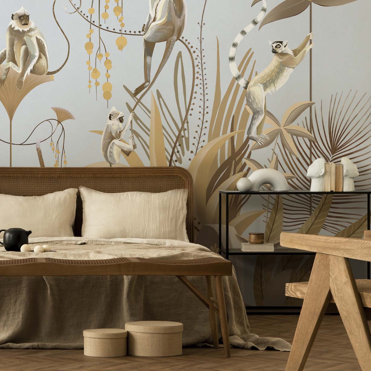 Обои из коллекций Wall Street в трех комнатах: EUPHORIA 22 в гостиной, Zoo в детской комнате, а в спальне Selva