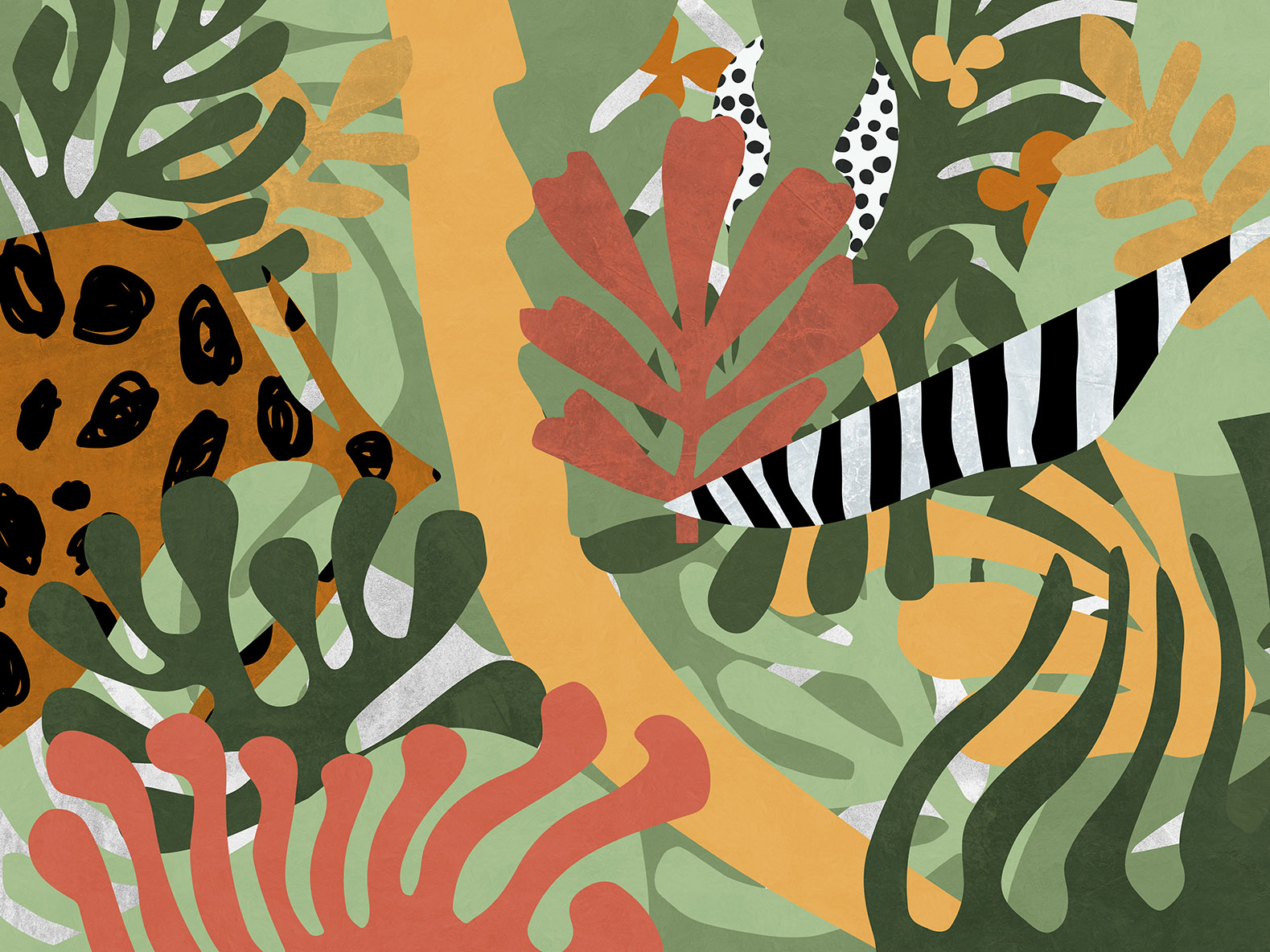 Обои из коллекций Wall Street в трех комнатах: EUPHORIA 22 в гостиной, Zoo в детской комнате, а в спальне Selva