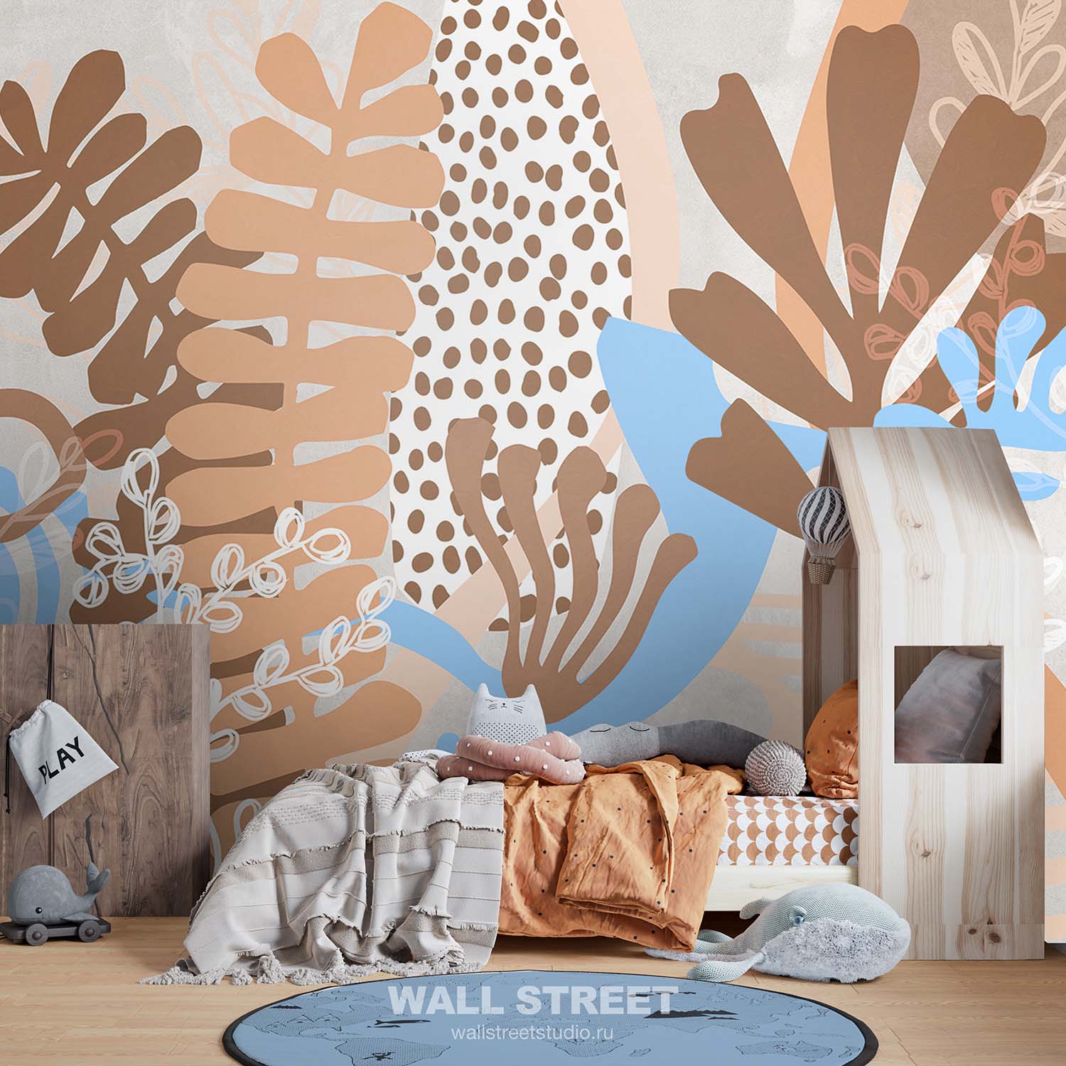 Обои из коллекций Wall Street в трех комнатах: EUPHORIA 22 в гостиной, Zoo в детской комнате, а в спальне Selva