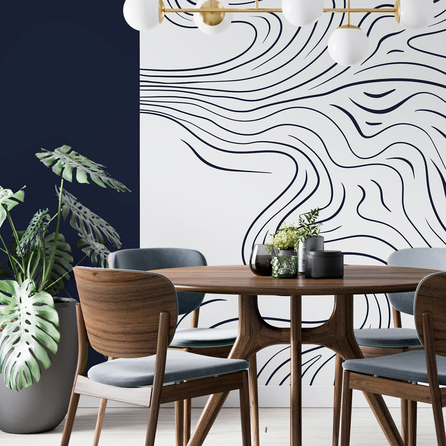 - Адаптация изображения под размер вашей стены с учетом расстановки мебели