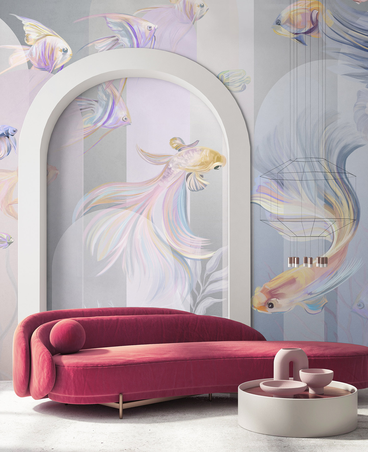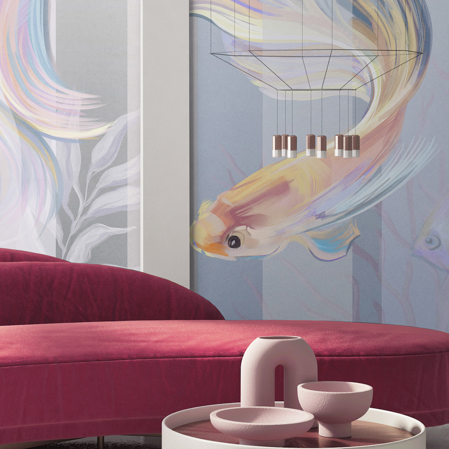 - Адаптация изображения под размер вашей стены с учетом расстановки мебели