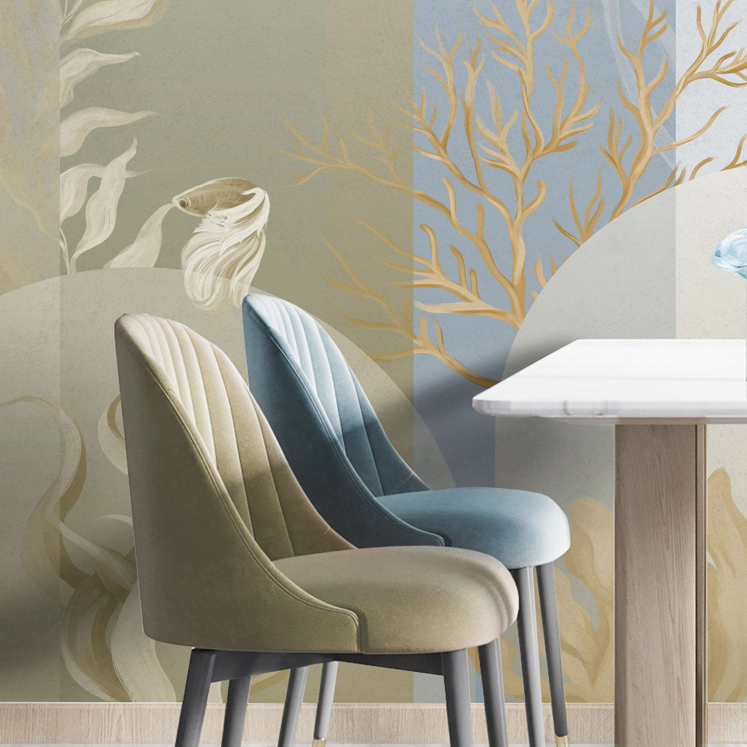 Коллекция обоев «OCEANARIUM» от компании Wall Street — это стильное решение для оформления интерьера в современном или классическом стиле. Дизайны сочетают гармонию оттенков и текстур, создавая уютную атмосферу и визуальную целостность пространства. Материал устойчив к выгоранию и влаге, легко очищается от бытовых загрязнений без потери внешнего вида. Обои подходят для любых помещений — от жилых до офисных интерьеров, отлично комбинируются между собой и с другими коллекциями. При поклейке рекомендуется использовать качественный клей и стандартную подготовку основания для долговечного результата.