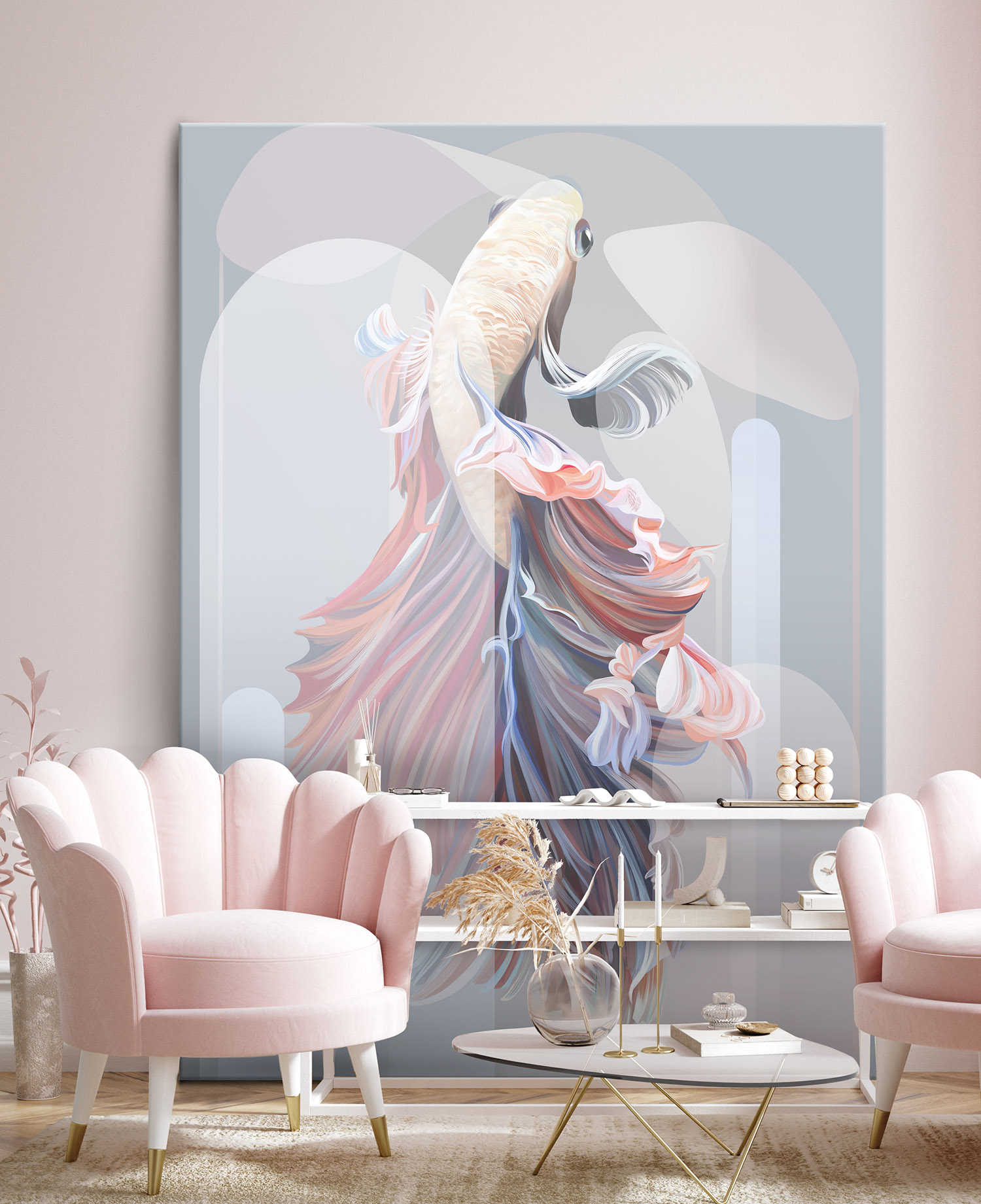 - Адаптация изображения под размер вашей стены с учетом расстановки мебели