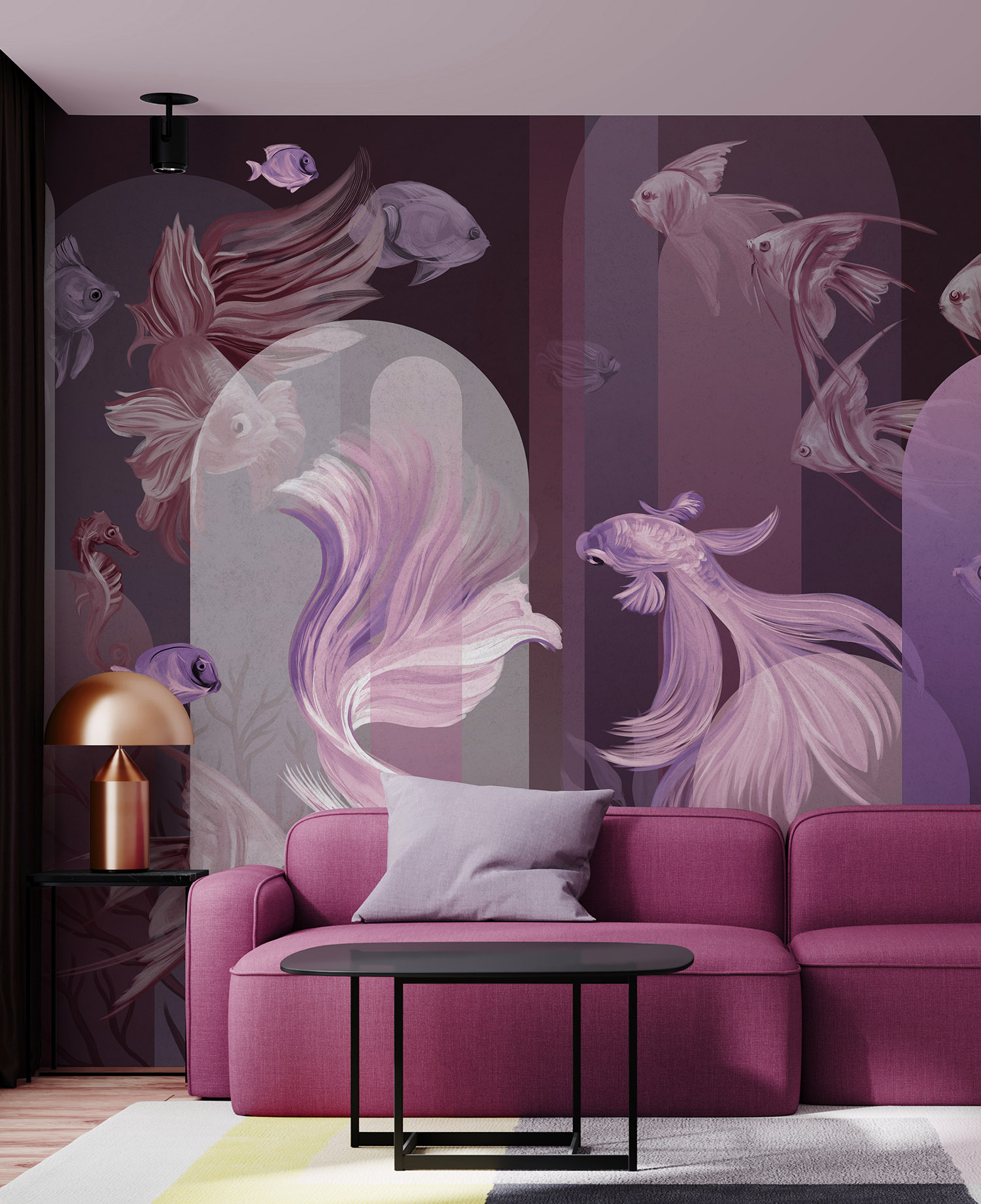 - Адаптация изображения под размер вашей стены с учетом расстановки мебели