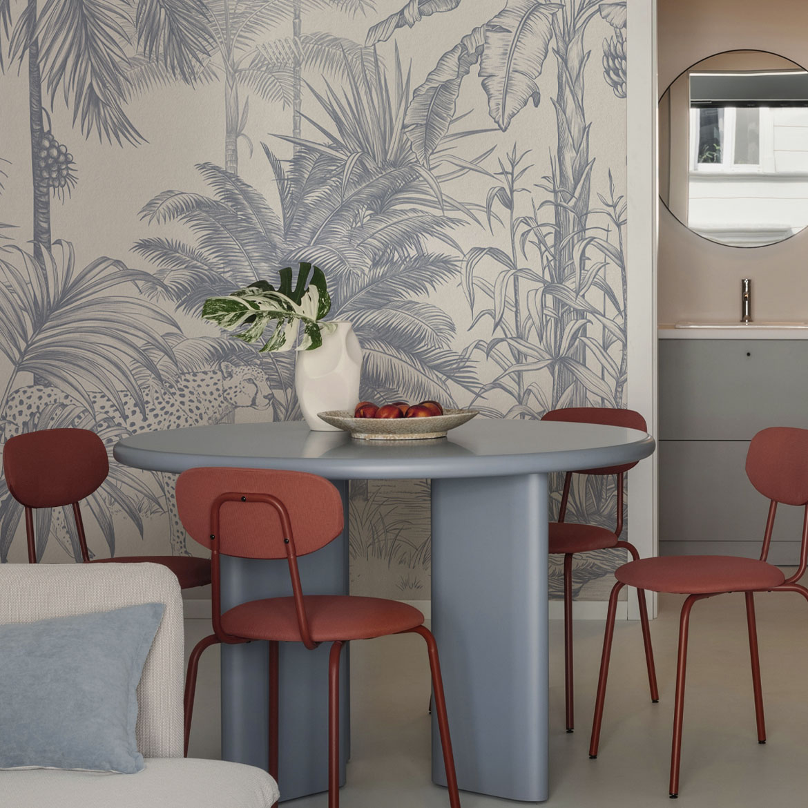 Обои из коллекций Wall Street в трех комнатах: EUPHORIA 22 в гостиной, Zoo в детской комнате, а в спальне Selva