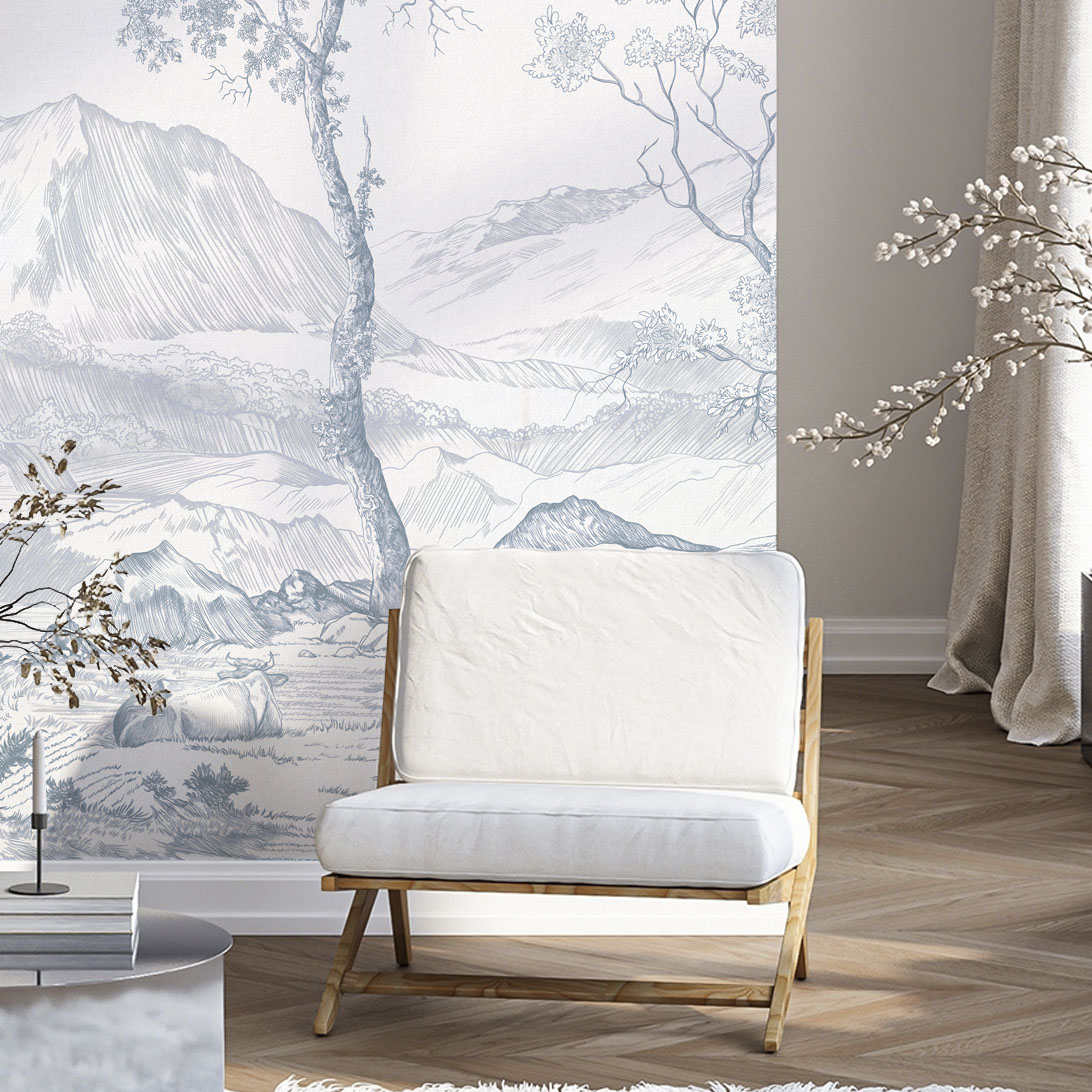 - Адаптация изображения под размер вашей стены с учетом расстановки мебели