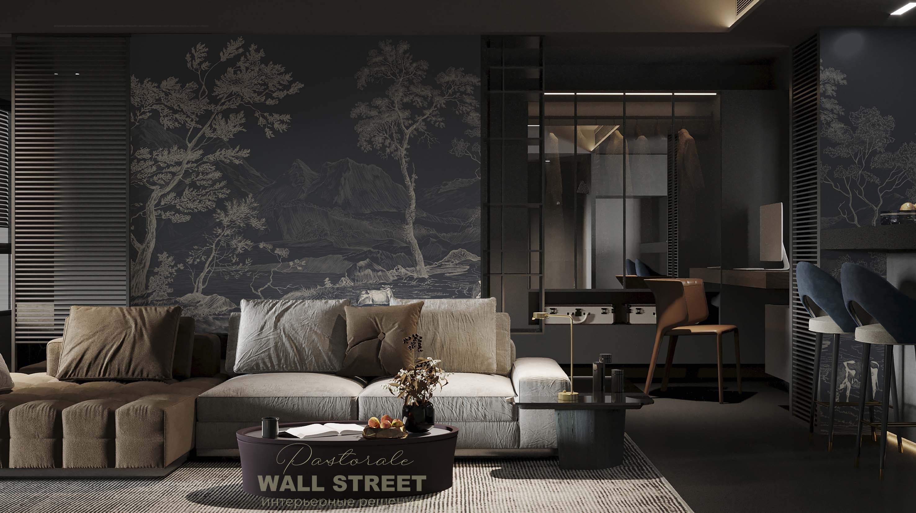 Дизайнерские обои Wall Street из коллекции ESTAMPE в гостиной