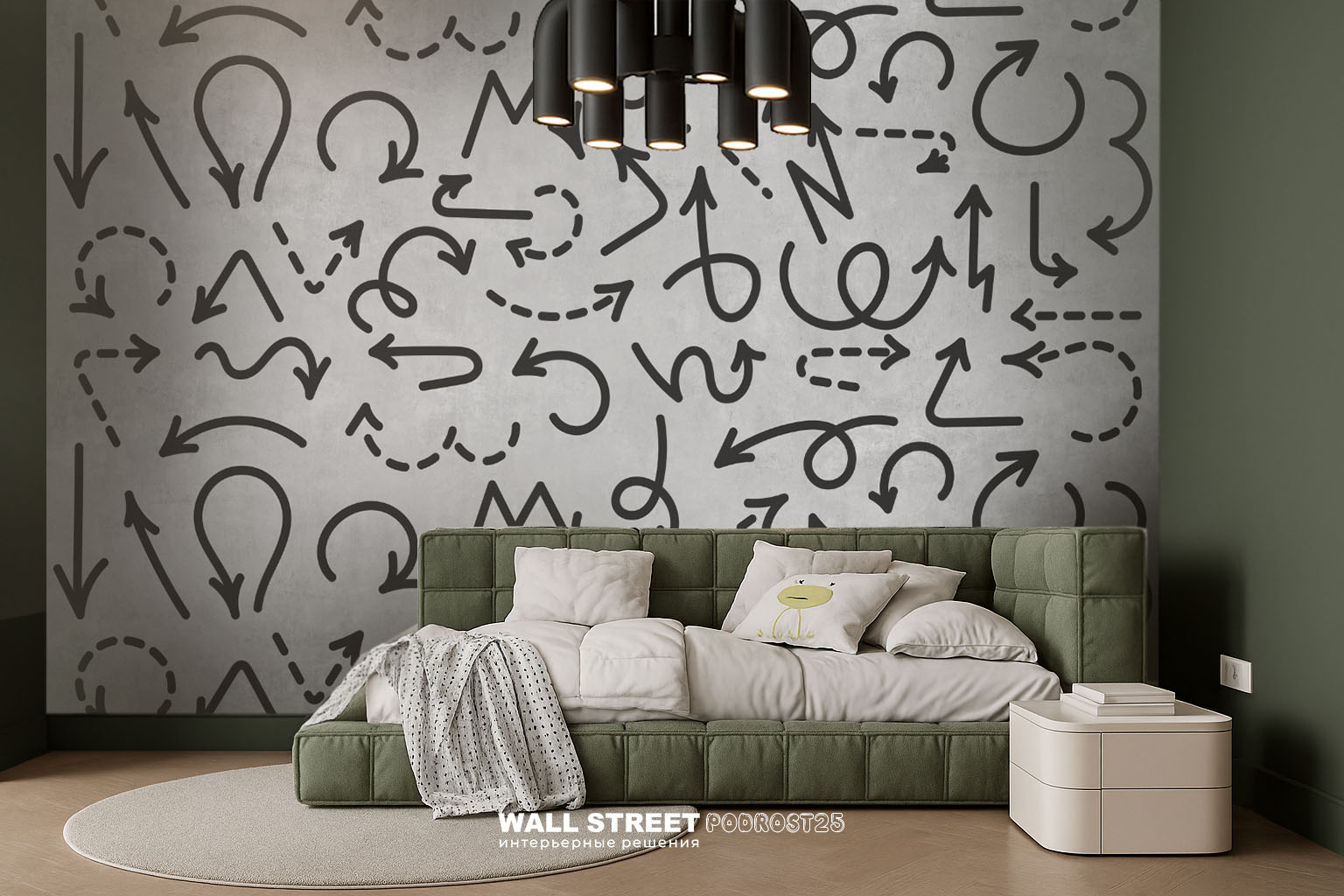 - Адаптация изображения под размер вашей стены с учетом расстановки мебели