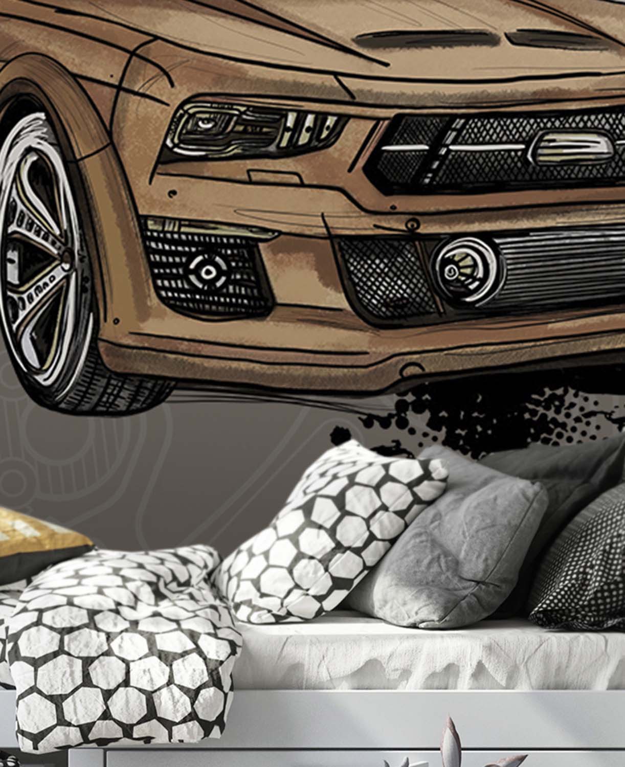 - Адаптация изображения под размер вашей стены с учетом расстановки мебели