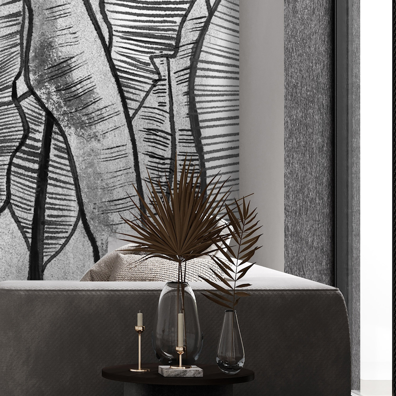 - Адаптация изображения под размер вашей стены с учетом расстановки мебели