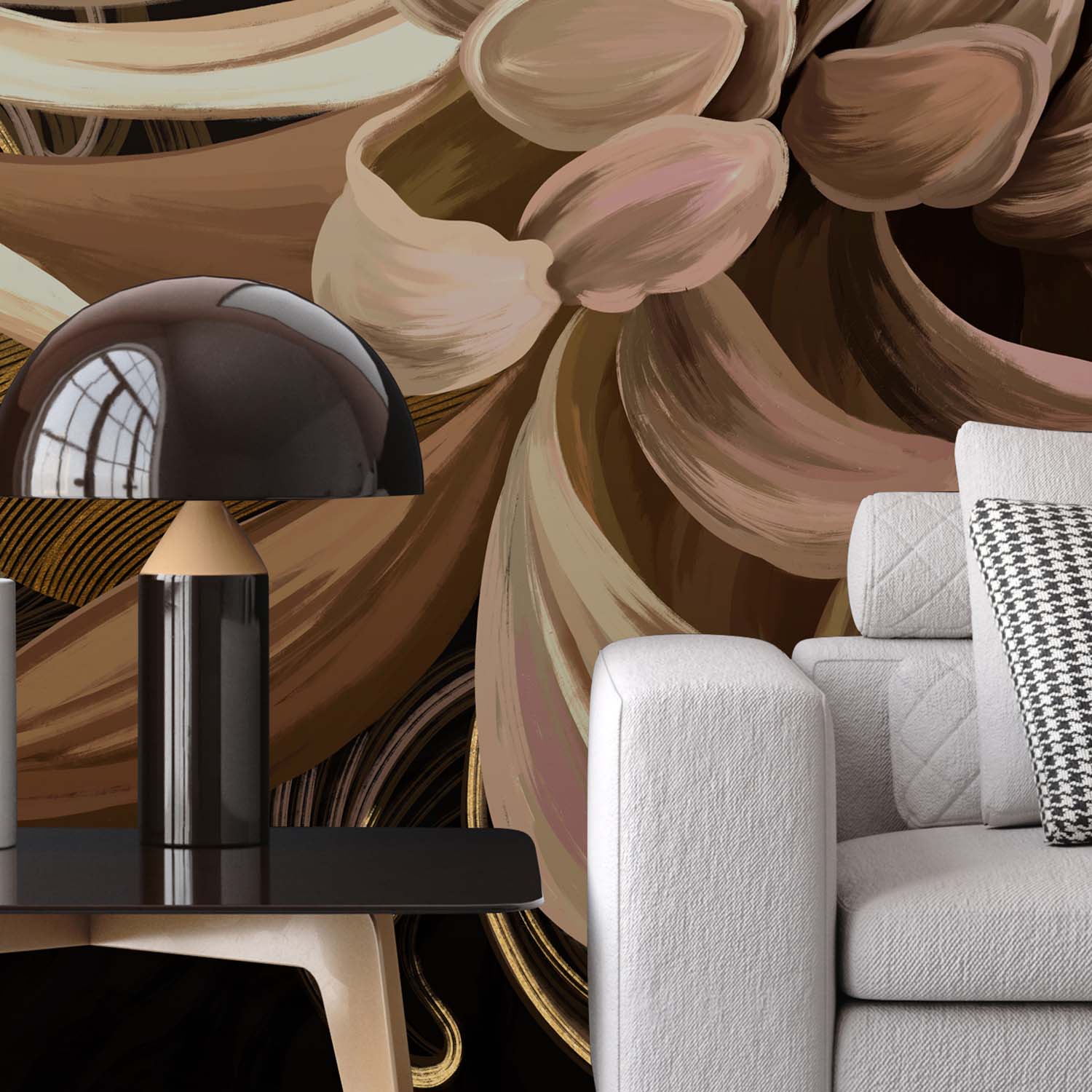 - Адаптация изображения под размер вашей стены с учетом расстановки мебели