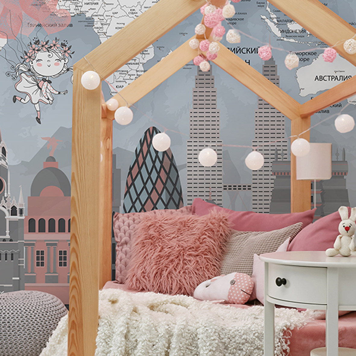 - Адаптация изображения под размер вашей стены с учетом расстановки мебели