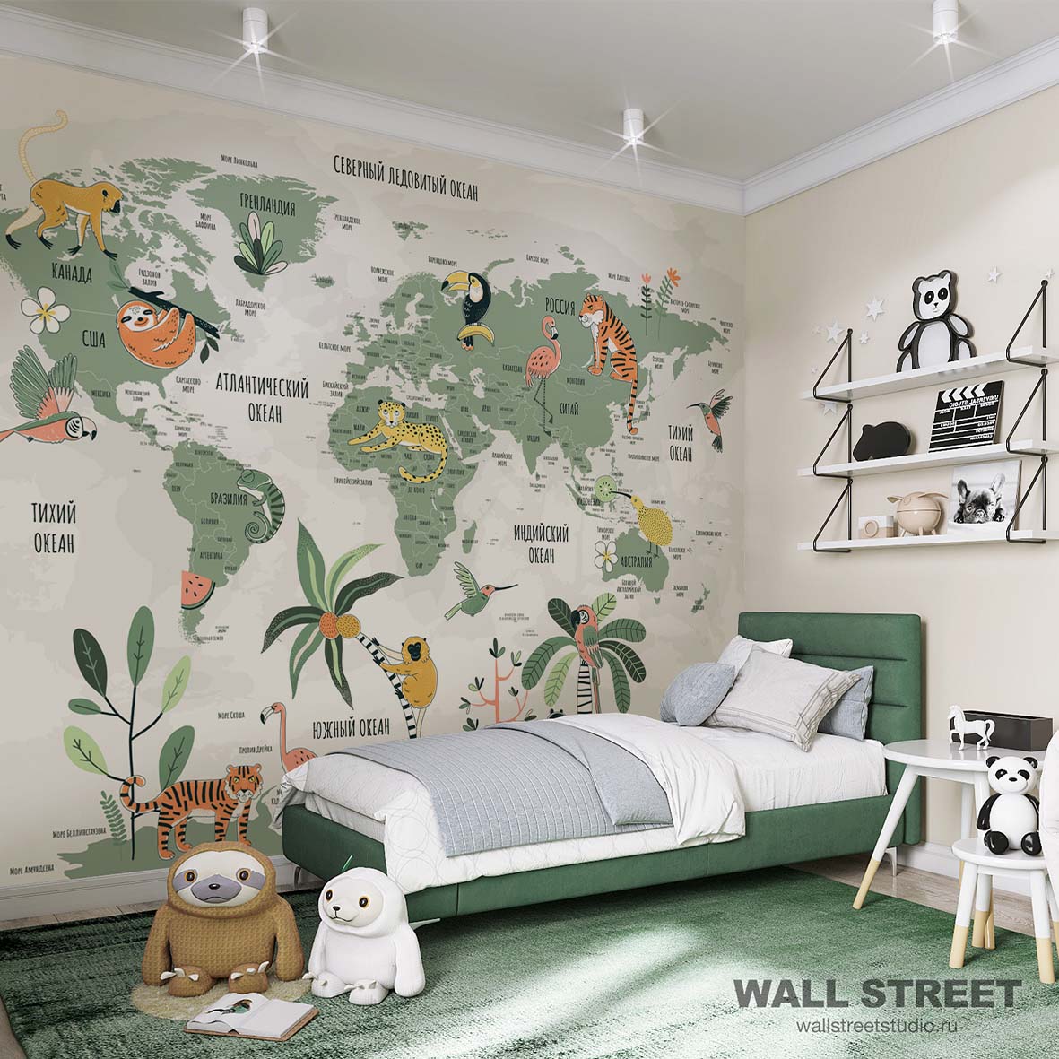 Обои из коллекций Wall Street в трех комнатах: EUPHORIA 22 в гостиной, Zoo в детской комнате, а в спальне Selva