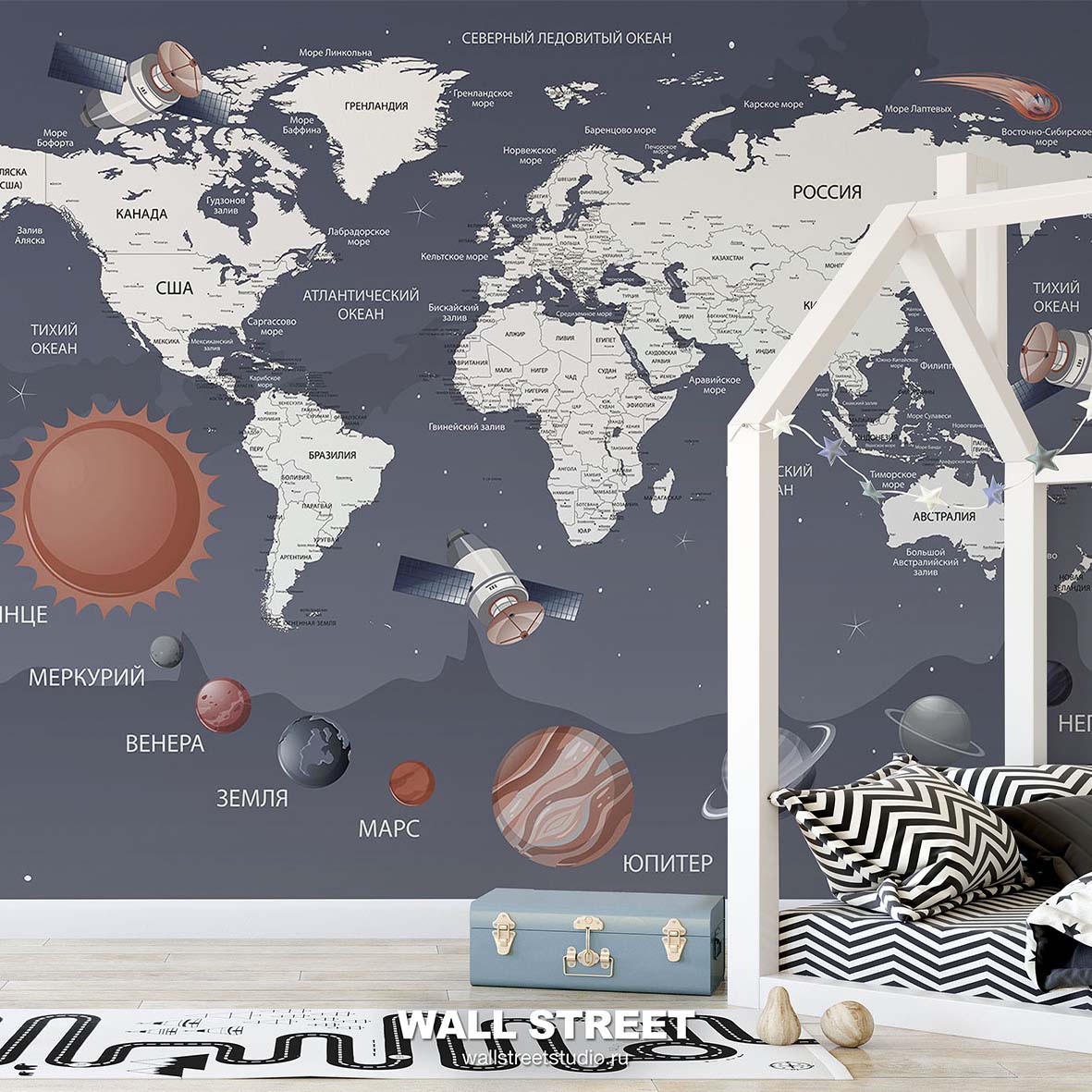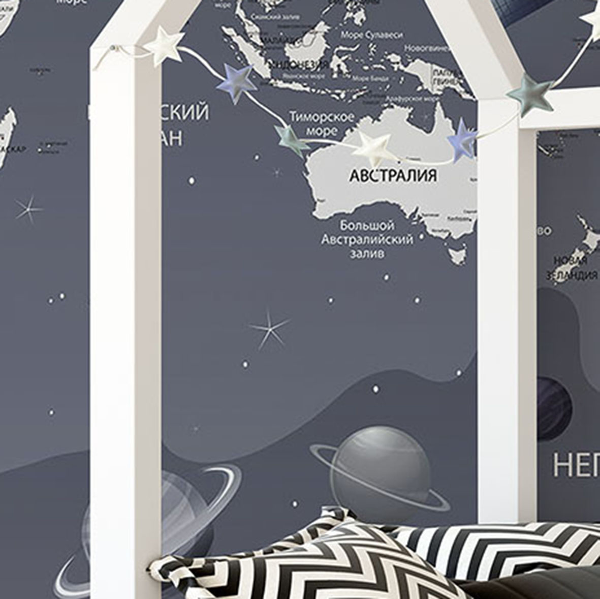 - Адаптация изображения под размер вашей стены с учетом расстановки мебели