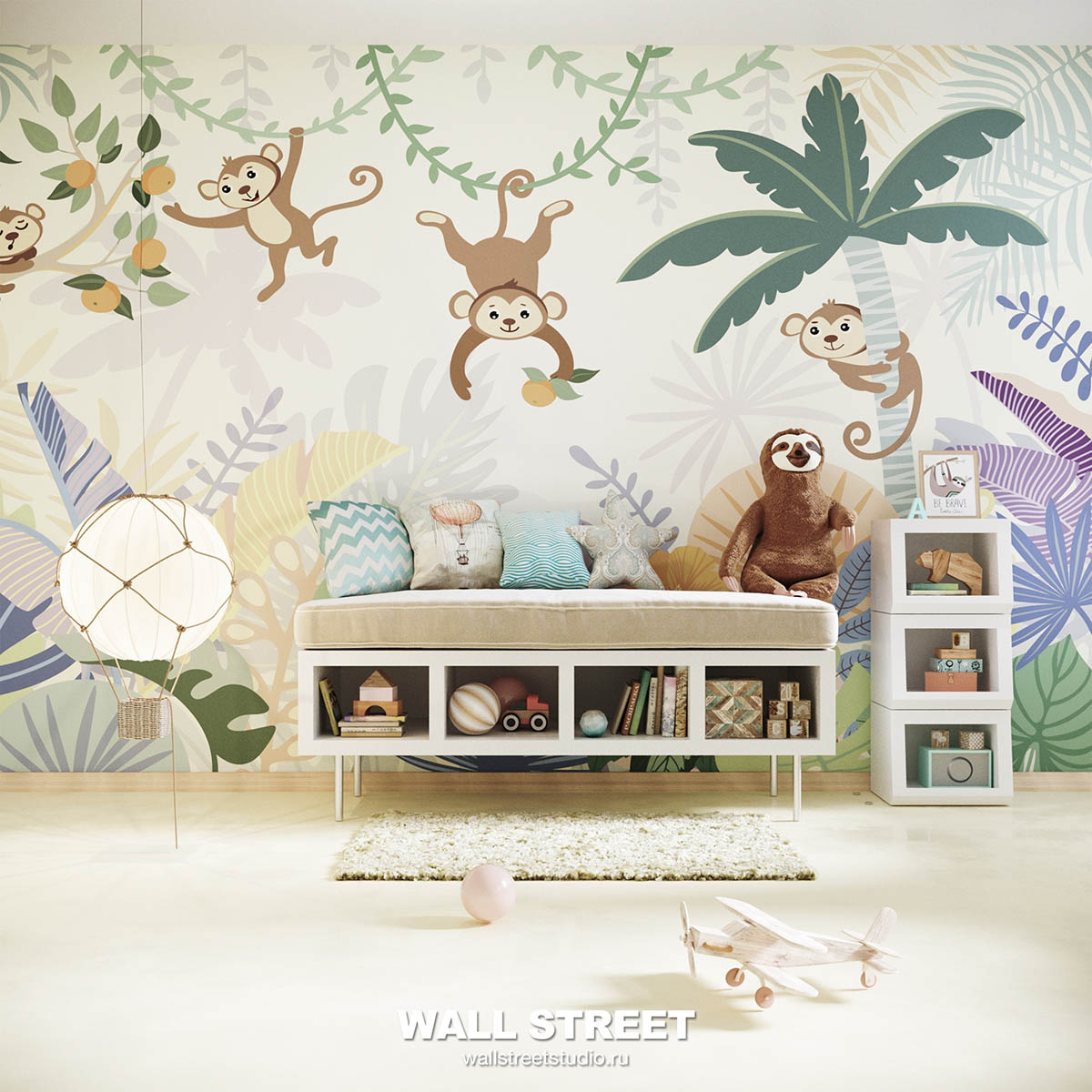 Обои из коллекций Wall Street в трех комнатах: EUPHORIA 22 в гостиной, Zoo в детской комнате, а в спальне Selva