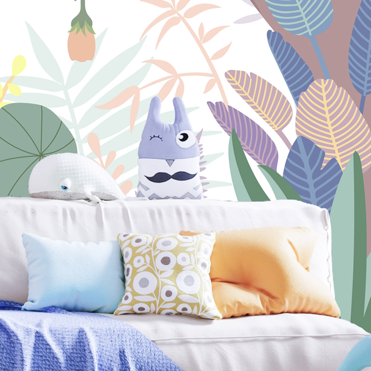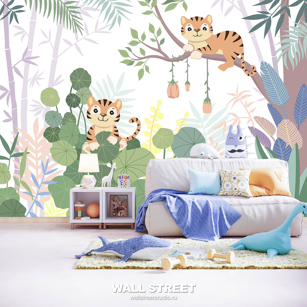 Обои из коллекций Wall Street в трех комнатах: EUPHORIA 22 в гостиной, Zoo в детской комнате, а в спальне Selva