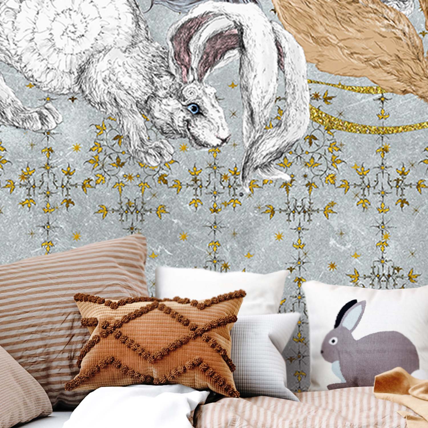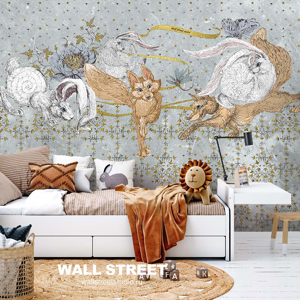 Обои из коллекций Wall Street в трех комнатах: EUPHORIA 22 в гостиной, Zoo в детской комнате, а в спальне Selva