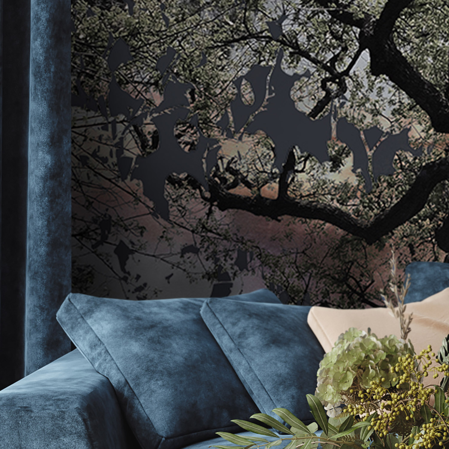 - Адаптация изображения под размер вашей стены с учетом расстановки мебели