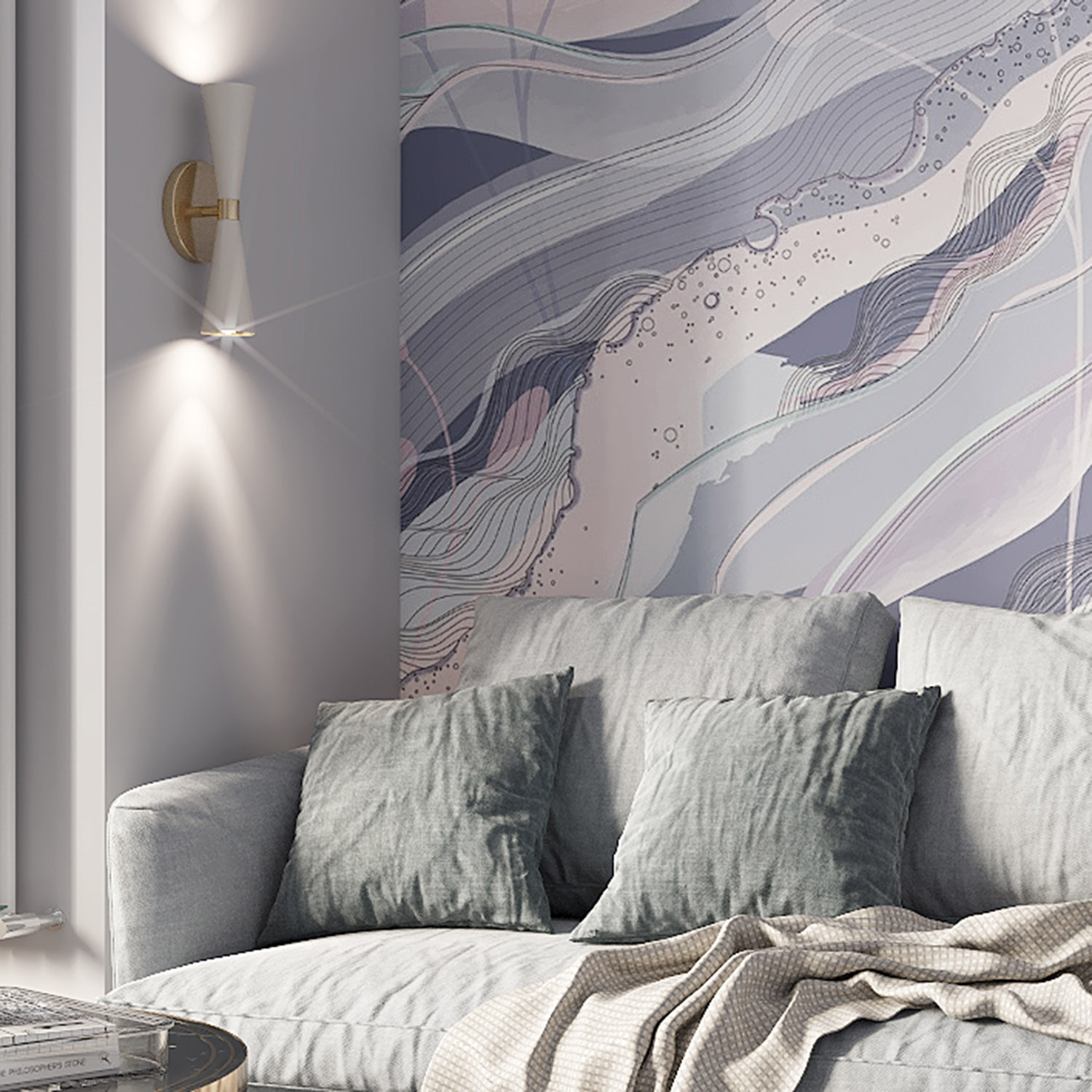 - Адаптация изображения под размер вашей стены с учетом расстановки мебели