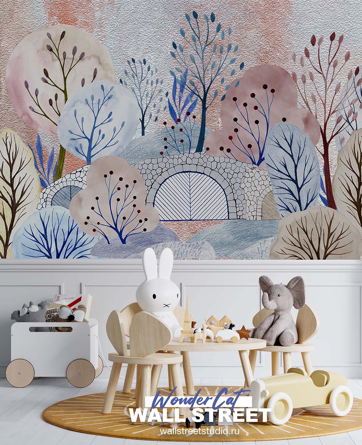 Обои из коллекций Wall Street в трех комнатах: EUPHORIA 22 в гостиной, Zoo в детской комнате, а в спальне Selva