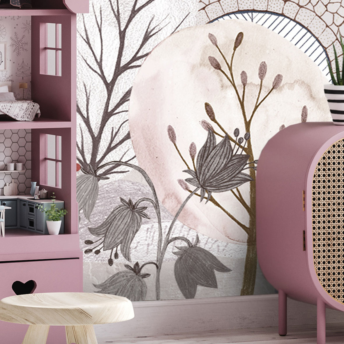 - Адаптация изображения под размер вашей стены с учетом расстановки мебели