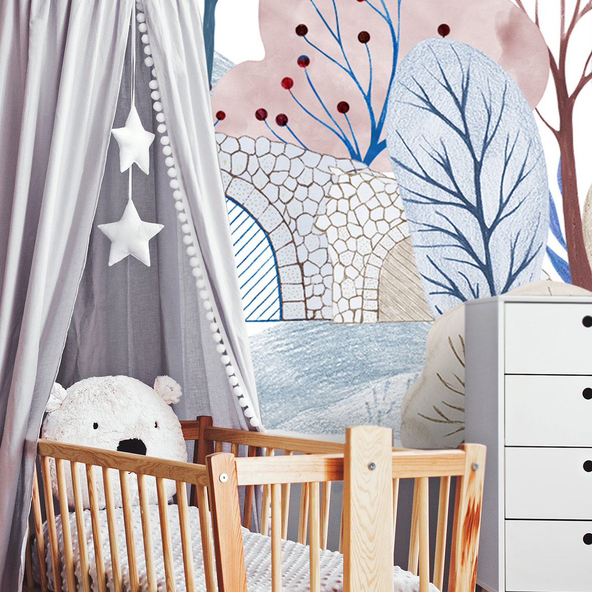 - Адаптация изображения под размер вашей стены с учетом расстановки мебели