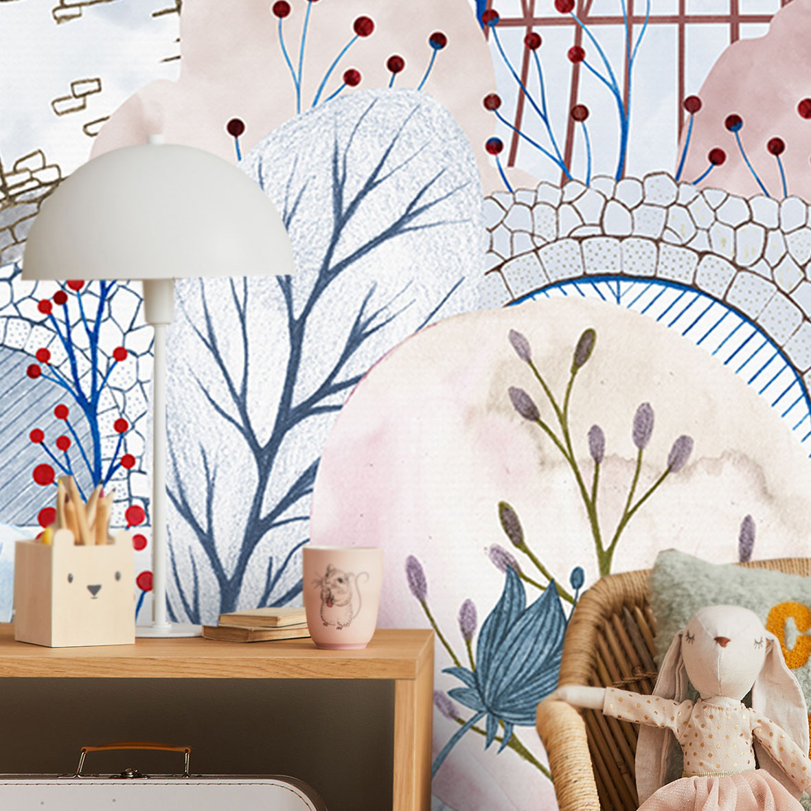 Обои из коллекций Wall Street в трех комнатах: EUPHORIA 22 в гостиной, Zoo в детской комнате, а в спальне Selva