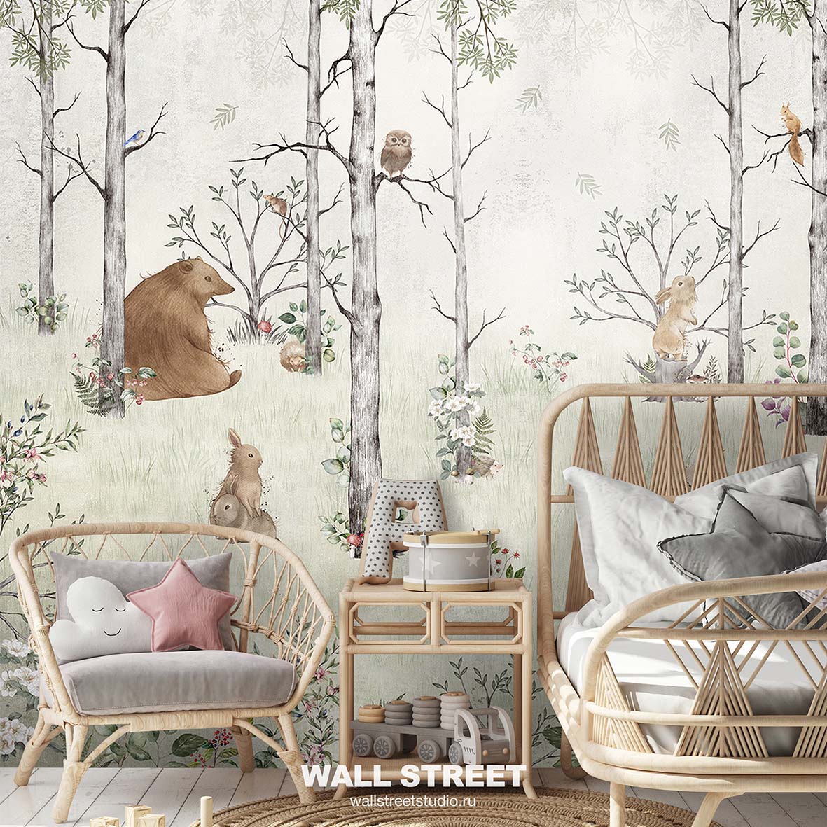 Обои из коллекций Wall Street в трех комнатах: EUPHORIA 22 в гостиной, Zoo в детской комнате, а в спальне Selva